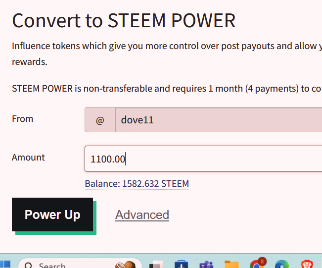 As the power-up process requires, going into my wallet, I clicked on the “Power Up” button, which brought me here.