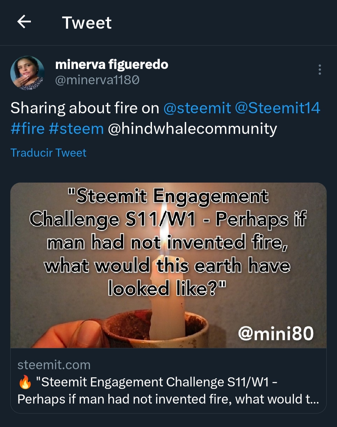 https://steemit.com/hive-179660/@cruzamilcar63/steemit-engagement-challenge-s11-w1-quizas-si-el-hombre-no-hubiera-inventado-el-fuego-como-habria-sido-esta-tierra