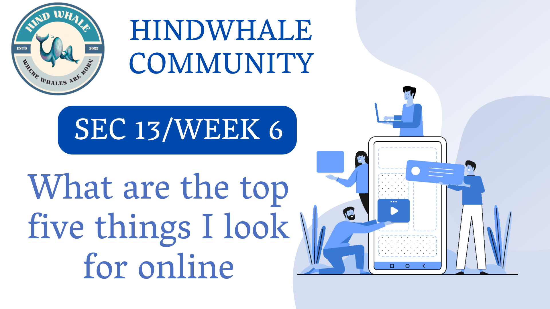 The Hindwhale community welcomes you to the 6th week of the "Steemit Engagement Challenge - S13W6- “What are the top five things I look for online?"" and we invite you to participate in our new contest, which is live now.
