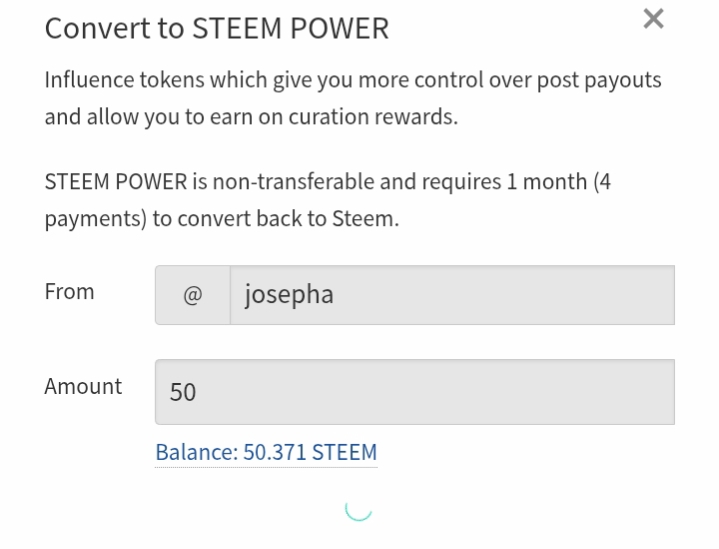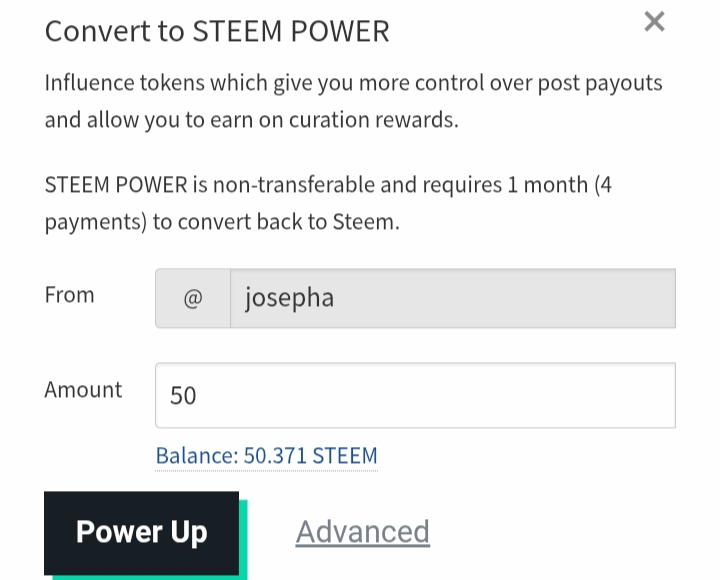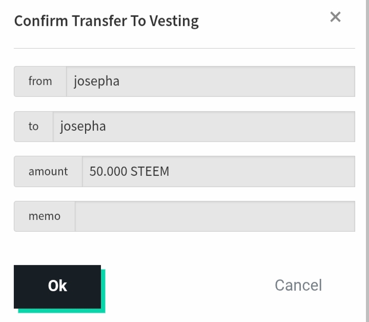 Step 4: Click on Ok and wait for the Steem you have power up to reflect in your Steem power balance.