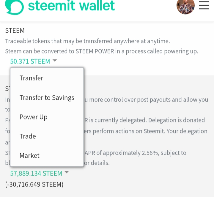 Step 1: Log in to your Steemit wallet and click on STEEM You will see Power Up in the middle of the options that will be shown to you, as seen in the screenshot image.