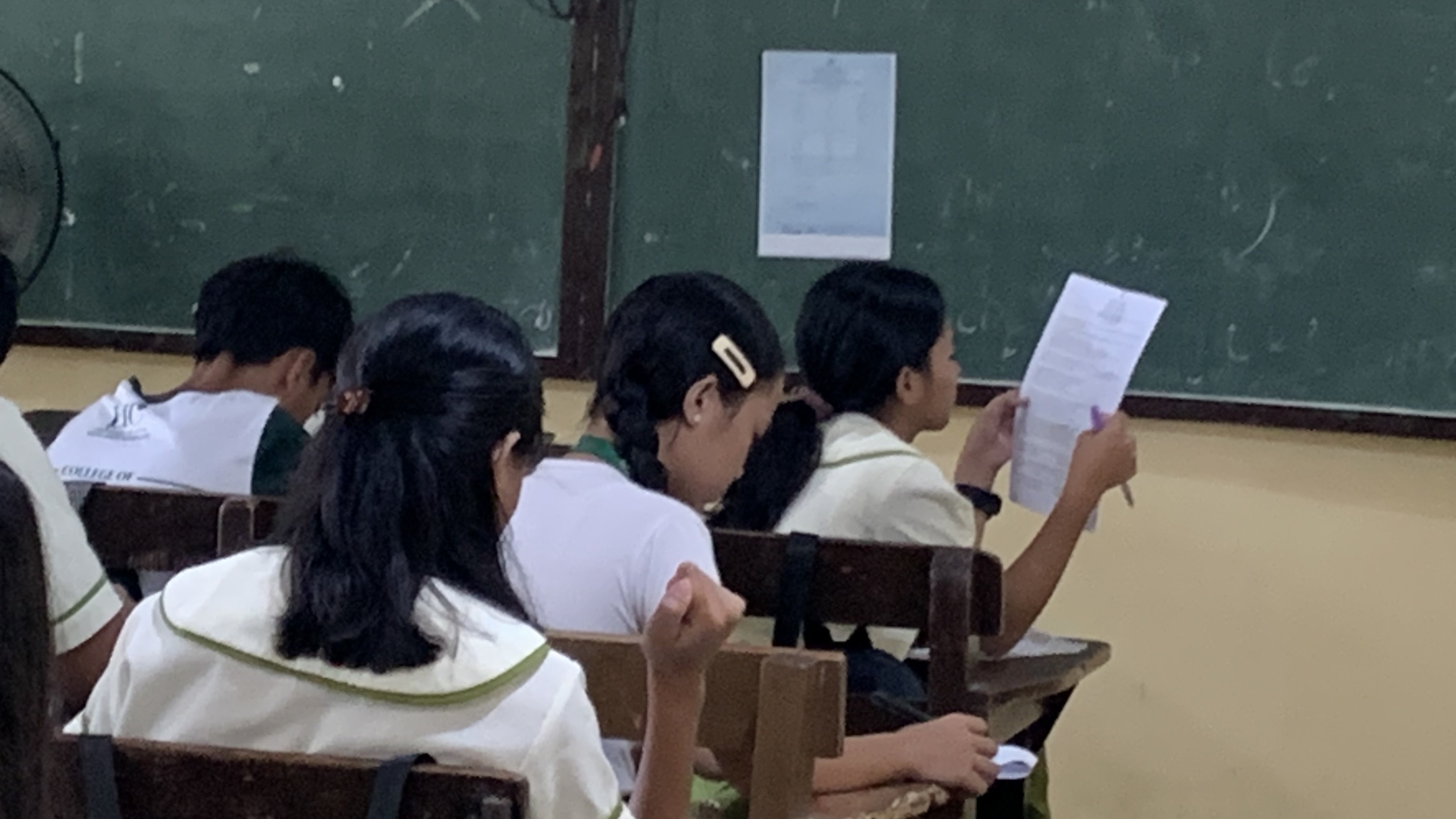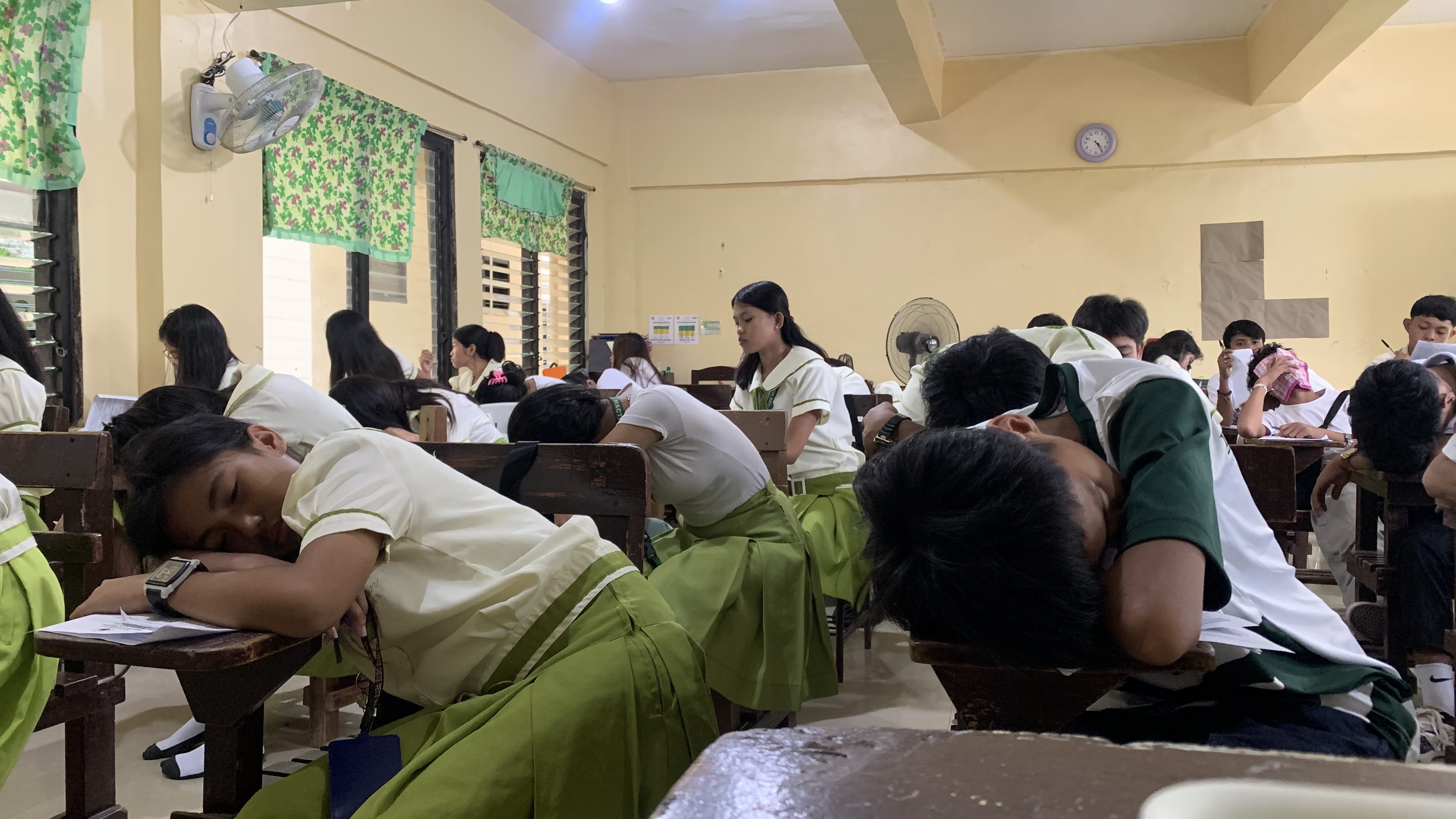 We made the exam for a day or two but the learners just answered it in 10-20 minutes. The alloted time is 1 hour. So, to avoid any commotion, if they were done already I let them review their answers and if they were done reviewing I let them took a power nap. I didnt let them open their notes nor use their phones anymore because the exam is a continuos process. Each row will receive different exam. After an hour they will pass it next to them. We had a two day exam. Four subjects for the first day and another 4 subjects for the second day.