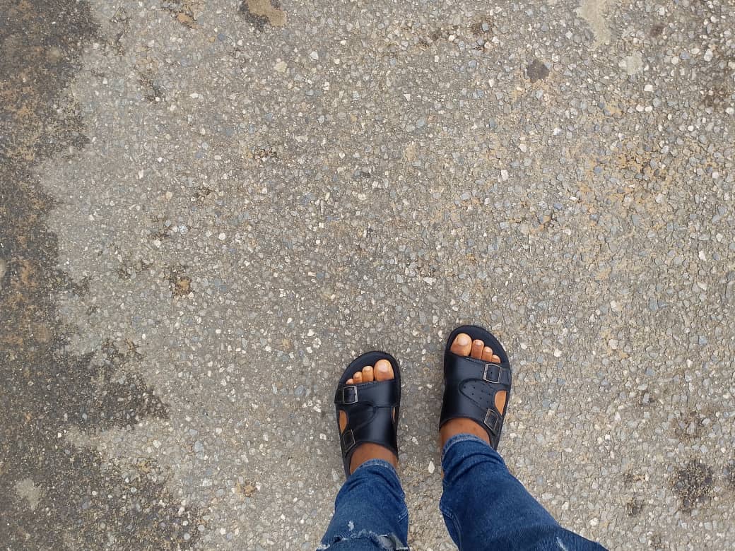 My legs were beginning to hurt because I was trekking to the main junction where I would see bus that was going to my place. I took a picture of it to see if they were swelling. When I got to the tarred road ,I paid my way down to the house
