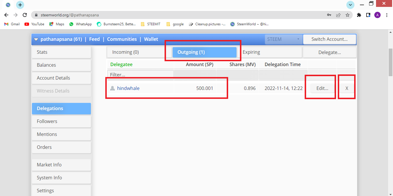 - Delegation means that you increase the steam power of that account by giving you steams to your community curation account(like @hindwhale) on #steemit. This means you give your steem to the community curation account and the community account uses that steem to vote on the post. You can't vote on your own post, but whenever you post a content, the community accounts vote on your post and you get rewarded. That's why the more steem-power we give to the community curation account, the more steem-power will increase in the community curation account, and the more steem-power to community curation account have, the more vote amount value you will get in curation(reward).