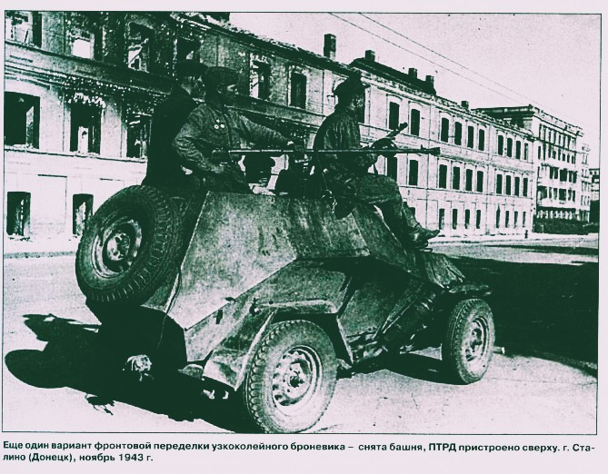 在GAZ,他们决定自己制造一种新的装甲车,这比旧的装甲车更好。他们于 1941 年 9 月 16 日开始研究。他们看了德国的装甲车,并与GAZ的首席设计师A. A. Lipgart和轻型坦克的设计师N. A. Astrov(他制造了T-60和T-70坦克)一起想出了自己的装甲车。他们没有使用此类车辆的经验,因此他们尝试了新的想法,例如带有倾斜墙壁和内部空间很小的装甲车体。车里有两个人:前面是驾驶员,后面是炮塔内的车长兼炮手。发动机在前面,油箱在后面(因此传动轴几乎不适合变速箱)。炮塔内有一挺DT机枪,车顶设有榴弹网。该车是在GAZ-64的基础上制造的。他们对底盘进行了很大的改变,以便汽车可以在任何地形上行驶。他们还更换了方向盘,因为驾驶员坐在中间而不是左边。该车辆由 6 至 15 毫米的装甲板保护,这些装甲板固定在车架上。在测试过程中,框架被打破。装甲可以防御普通子弹,有时也可以防御穿甲弹和大口径子弹。然后他们又拿了其他的钢材和装甲板,防护力变得更好了。
