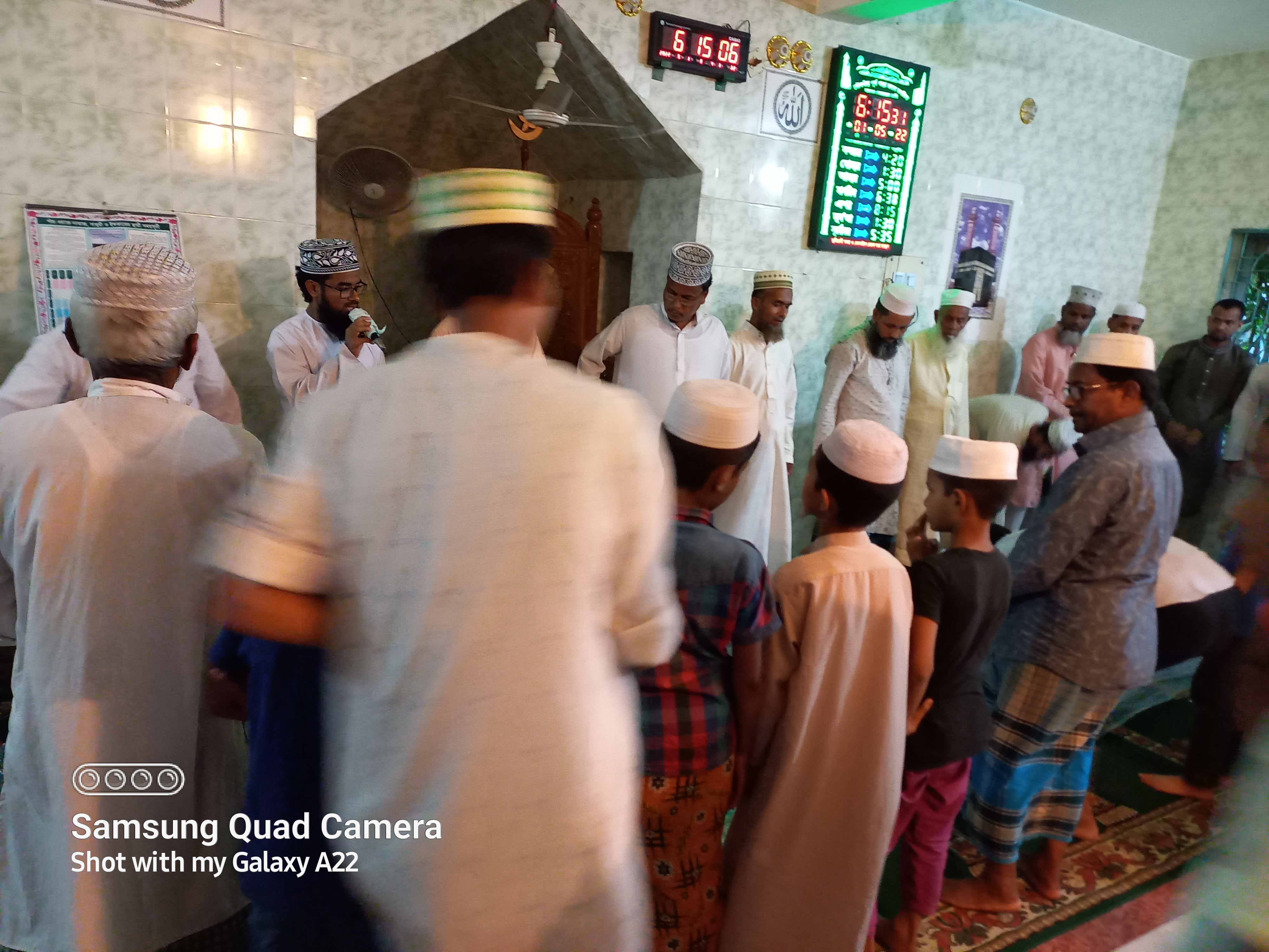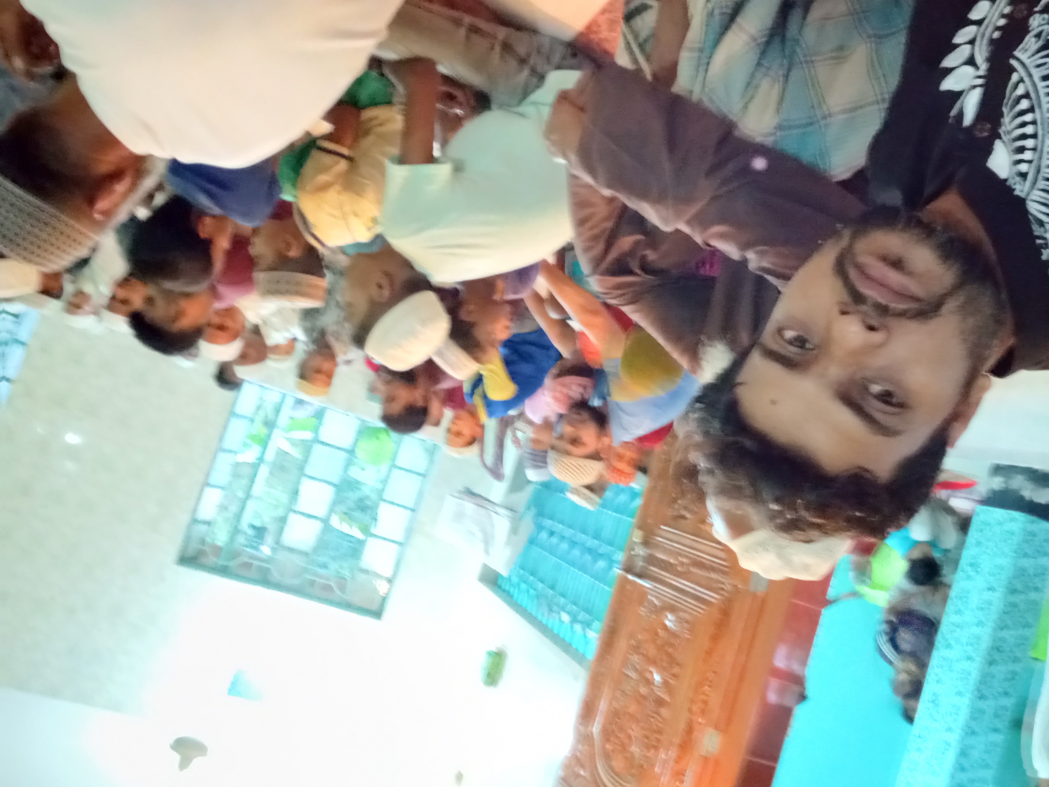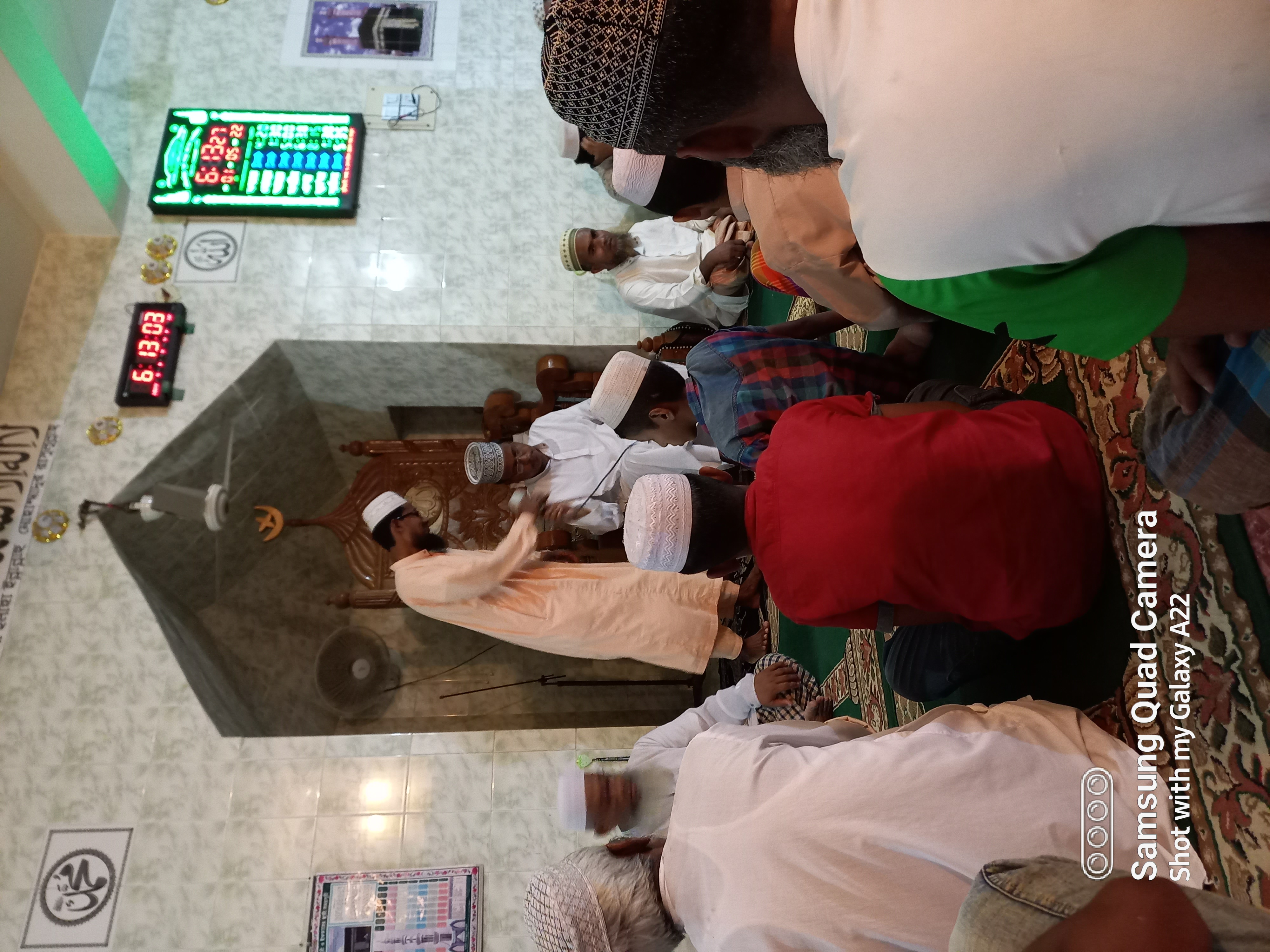 এখানে আপনারা দেখতে পাচ্ছেন একজন হুজুর দাঁড়িয়ে আছে এবং অন্য জনকে বক্তব্য দেওয়ার জন্য মাইক্রোফোন টা এগিয়ে দিচ্ছেন। যিনি দাঁড়িয়ে আছে উনি হচ্ছে আমাদের মসজিদের ইমাম। আর যিনি বসে আছে উনি হচ্ছে আমাদের কেন্দ্রীয় মসজিদের ইমাম। অনেক বড় একজন আলেম এবং আল্লাহর প্রিয় বান্দা। এবং কি সবচেয়ে বড় কথা হল মোঃ আব্দুল কাদের স্যার উনি আমার প্রিয় একজন শিক্ষক। বক্তব্য পেশ করার পর মিলাদ মাহফিল শেষ হওয়ার পর স্যারের সাথে কুশল বিনিময় হলো, আমি অনেক খুশি ছিলাম ওনাকে কাছে পেয়ে। আর স্যার জানতোই না যে এটা আমাদের সমাজের মসজিদ, যদিও স্যারের সাথে সকাল-বিকেল বাজারে গেলেই দেখা হয়।