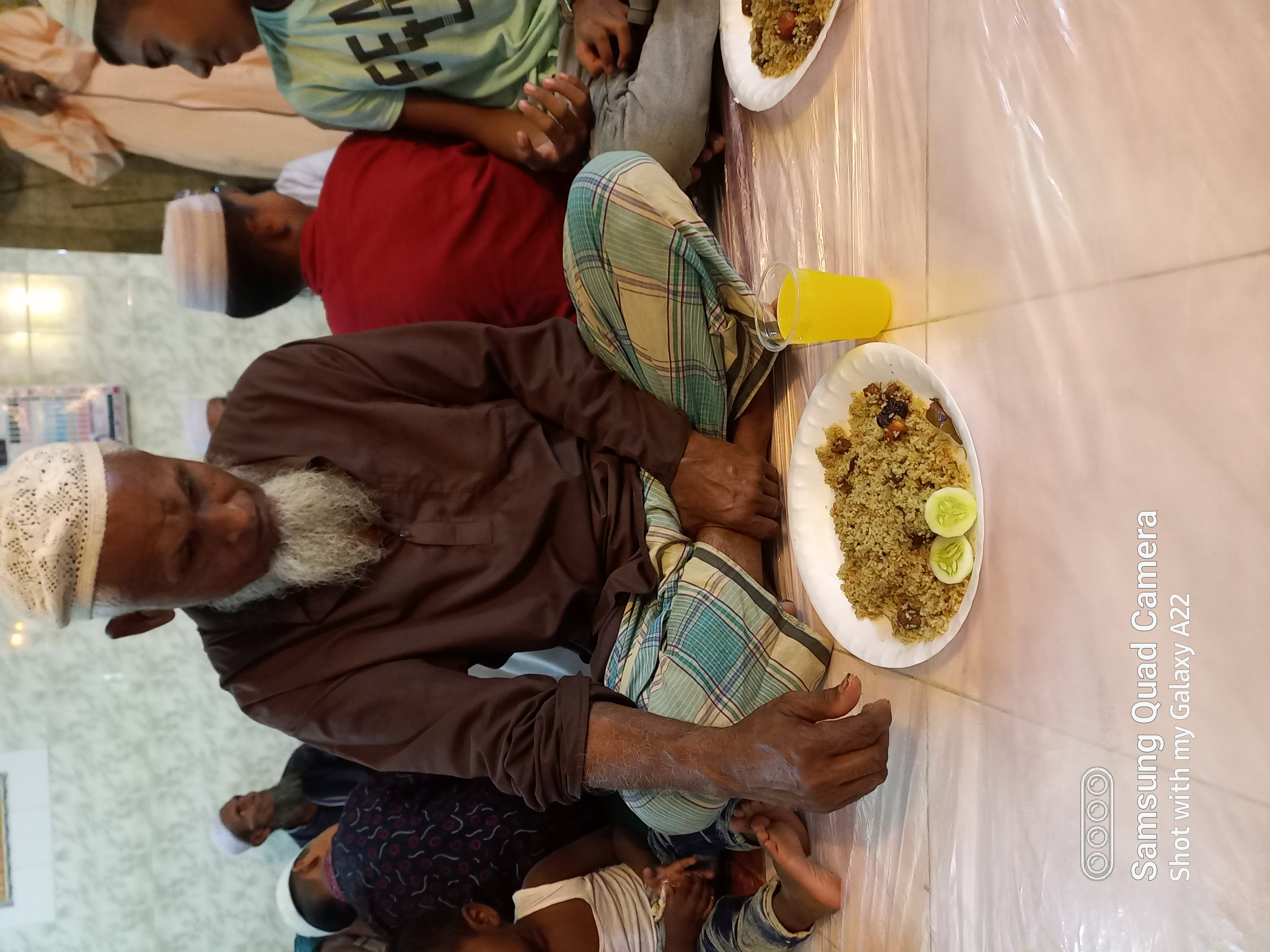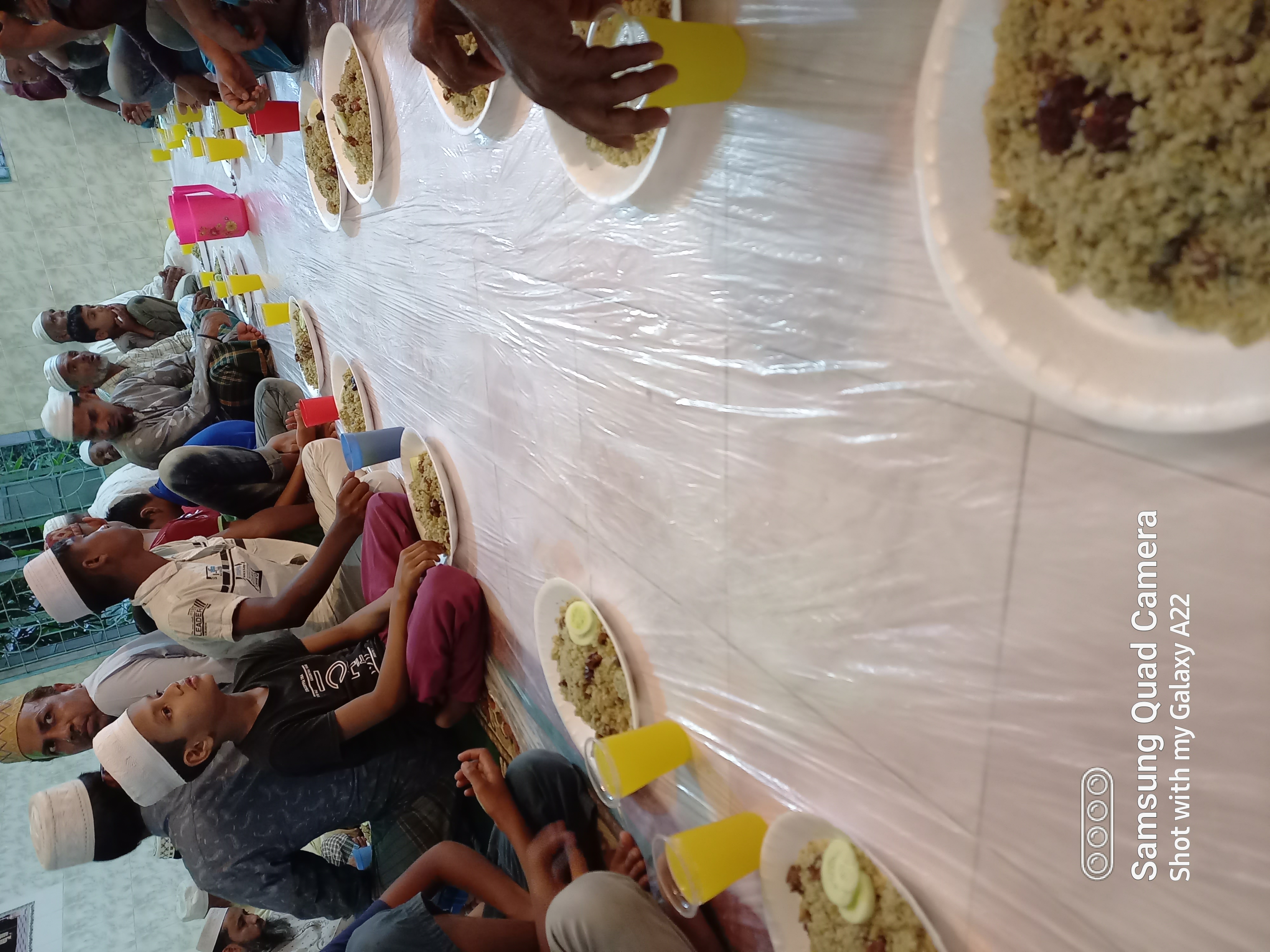 সবাইকে সারিবদ্ধ ভাবে বসানো হয়েছে এবং যার যার সামনে বিরানি পৌঁছে দেওয়া হয়েছে। এবং সাথে শরবতের গ্লাস যোগ দিয়ে দেওয়া হয়েছে। এবং প্রতিজনকে দুটি করে ক্লাস দেয়া হয়েছে একটা শরবত খাওয়ার জন্য আরেকটা সাদা পানি খাওয়ার জন্য। যাই হোক তবে আমার কাছে দিনটি ছিল সত্যিই স্পেশাল একটা দিন। তাই আমার বাংলা ব্লগার বন্ধুদের সাথে শেয়ার করা।