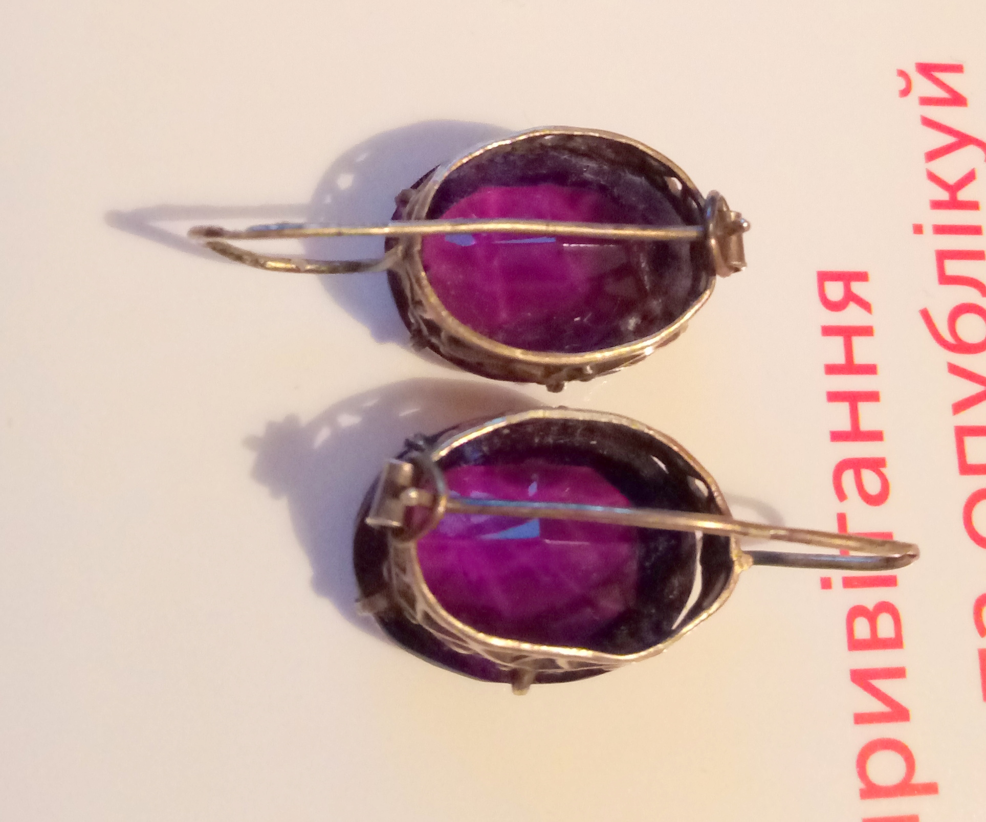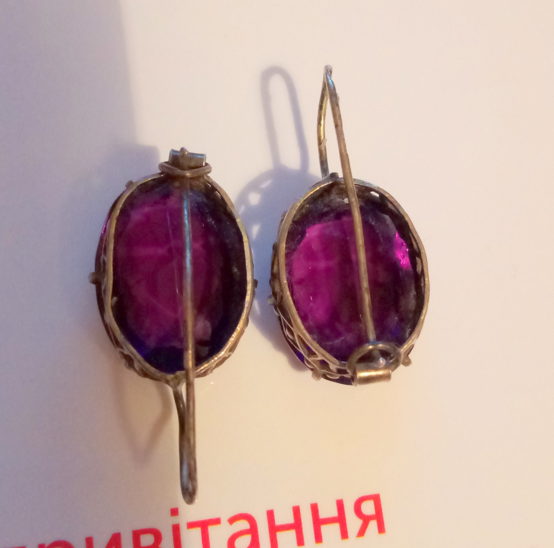 Серьги с клеймом (43К В-875). Присутствует звезда серп и молот. Состояние отличное. Цвет камня по фото.