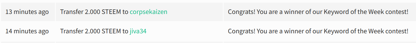 Each of you will receive 2 STEEM shortly; you’ll find a screenshot of the transactions in the comments section.