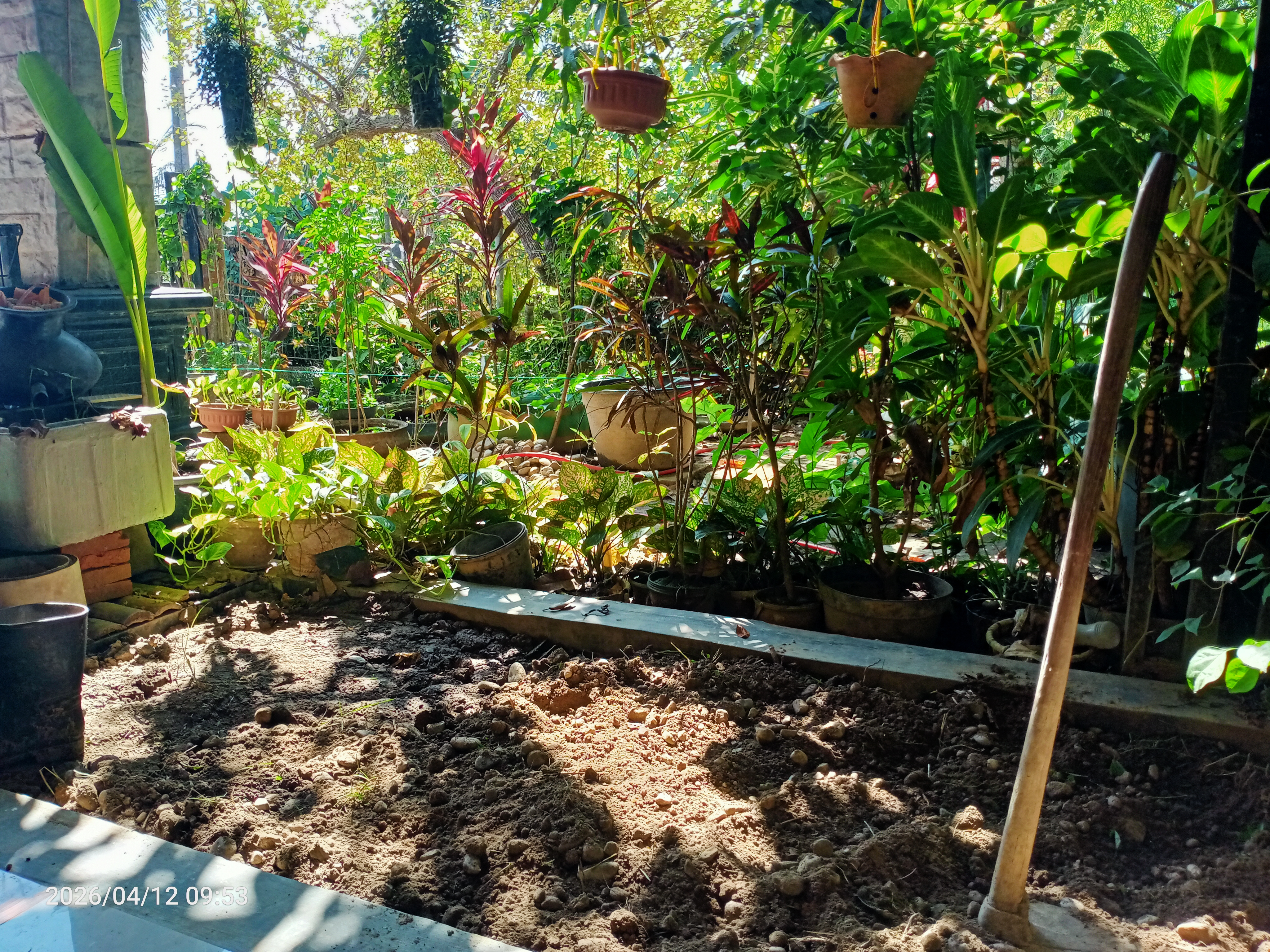 Eks kolam ikan koiAku tidak minum kopi di pagi ini dan hanya menikmati nasi goreng kampung saja sebagai sarapan pagi ku. Dan setelah selesai sarapan, aku menuju teras rumah kami untuk meratakan tanah timbunan di dalam eks kolam ikan koi kami, yang telah aku angkut sejak kemarin.