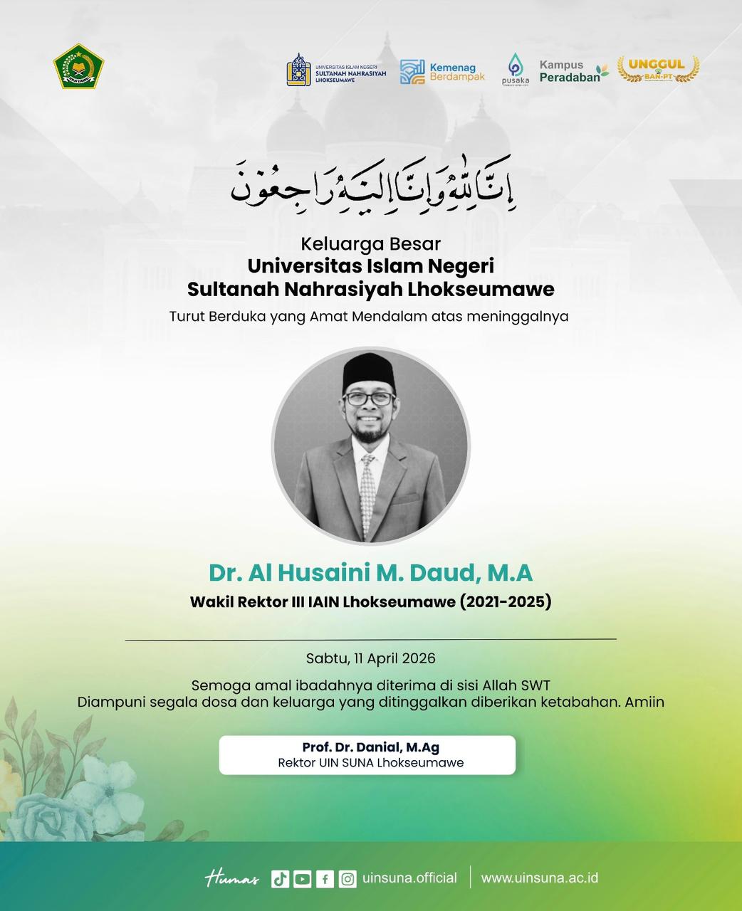 Berita dukacitaSiang ini aku mendapatkan sebuah berita dukacita, dimana salah seorang dosen UIN Sultanah Nahrasiyah yang pernah menjabat sebagai wakil rektor telah meninggal dunia.
