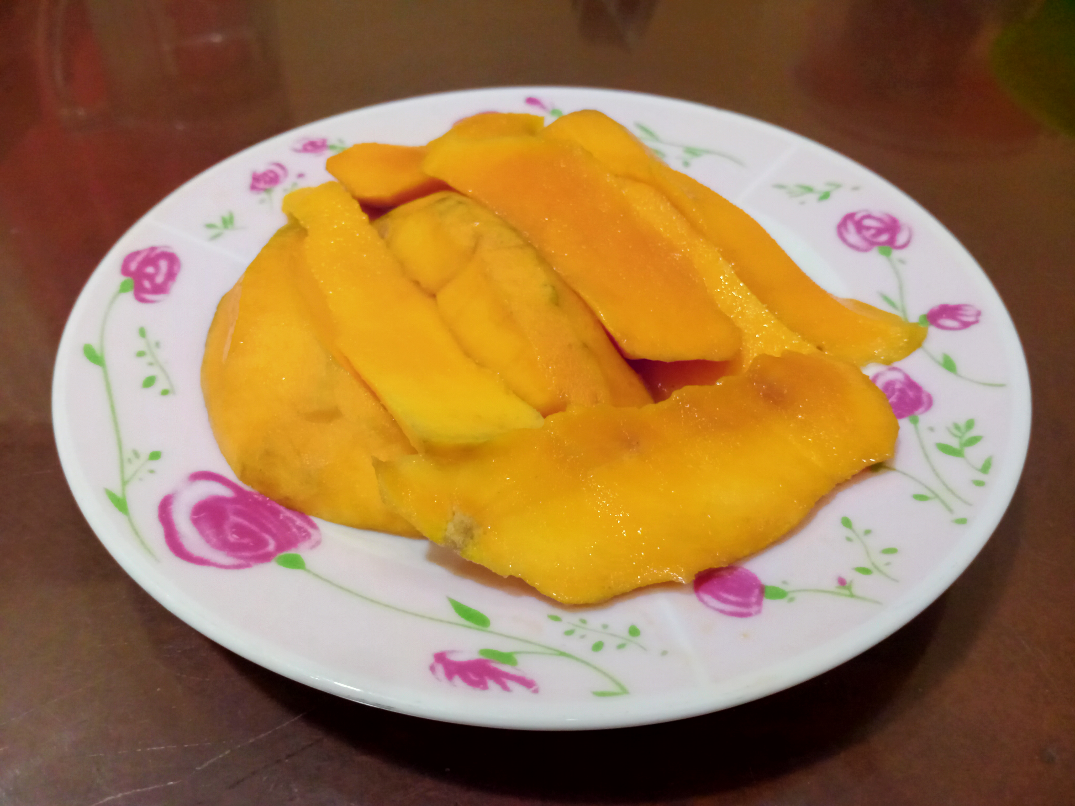 Selanjutnya aku mandi dan membersihkan badanku agar kami bisa makan malam bersama sebelum waktu sholat magrib tiba. Dan sebagai appetizer, istriku menyiapkan potongan buah mangga yang berasal dari pohon mangga yang ada di halaman rumah kami.