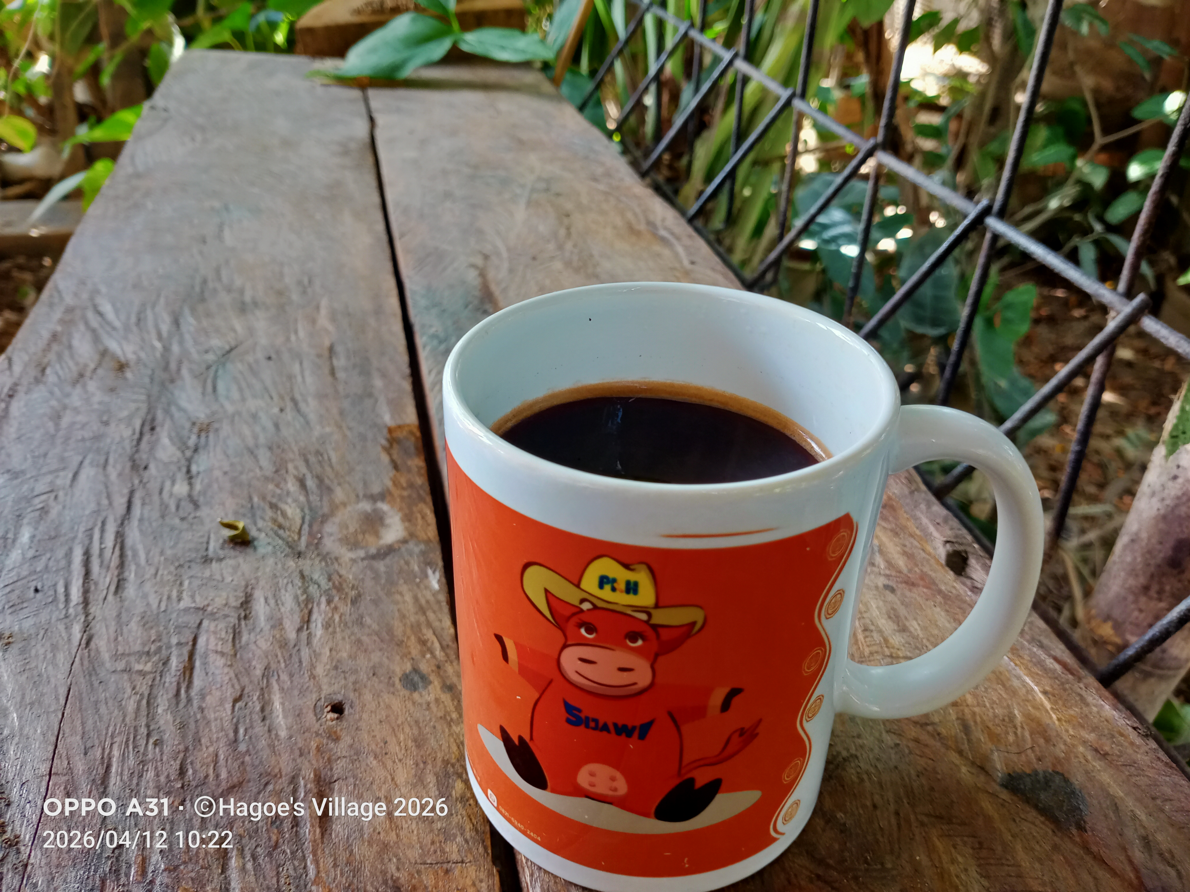 Saat aku beristirahat dari bekerja memotong pohon bidara ini barulah aku membuatkan kopi espresso panas tanpa gula. Sementara istriku dan si kecil Alvira masih berada di Mesjid Al-Khalifah Ibrahim Matangkuli untuk mengikuti pengajian rutin.