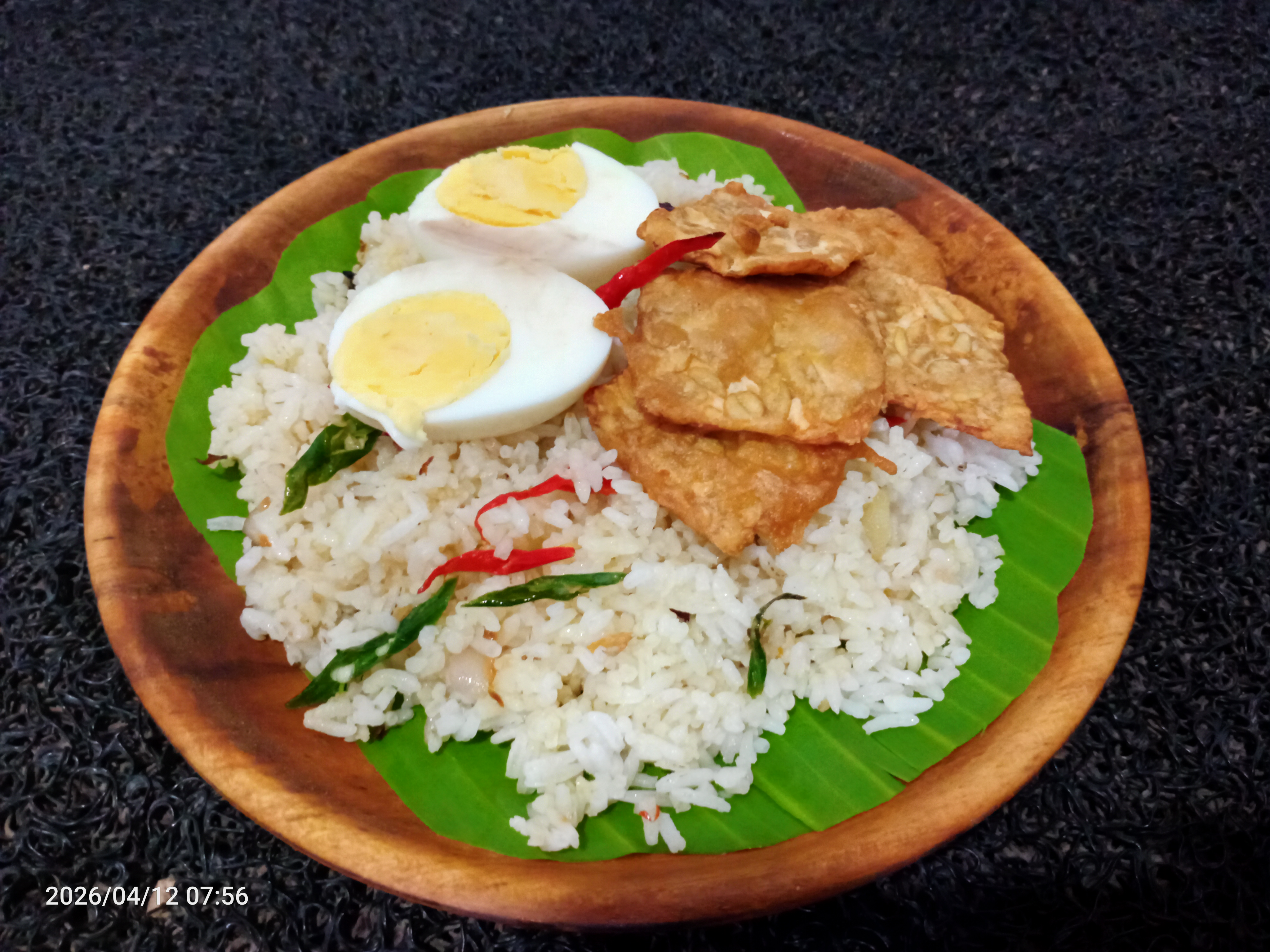 Nasi goreng kampungAku bangun pagi untuk menunaikan kewajiban sholat subuh dan kemudian menuju dapur, dimana istriku sudah menyiapkan nasi goreng kampung untuk menu sarapan pagi kami.