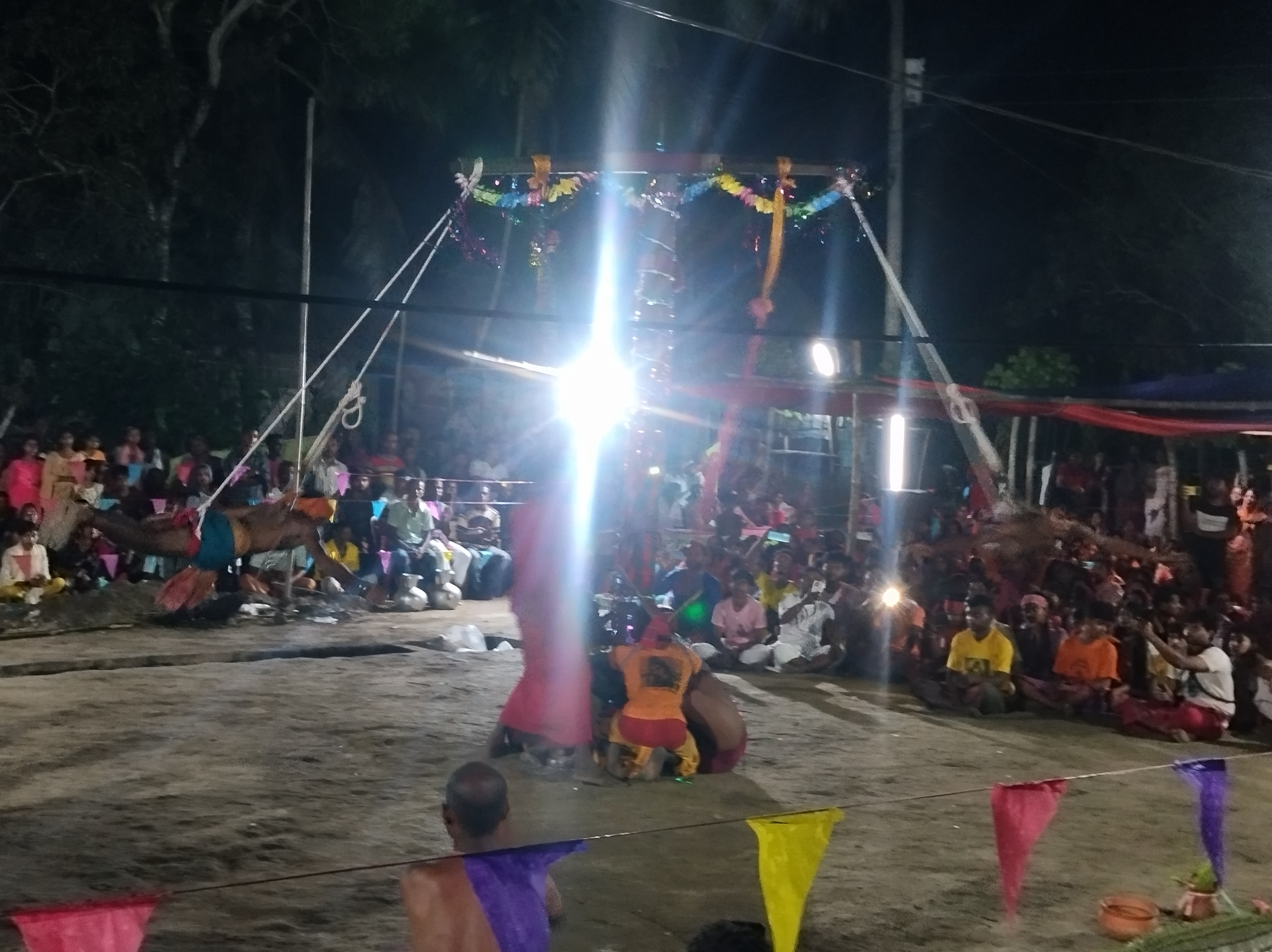 দু'জন মানুষের পিঠে বঁড়শি ফুটিয়ে ঘুরানো হচ্ছে। সত্যি বলতে, এটা দেখলে আমার গায়ের ভেতর কেমন একটা অস্বস্তি অনুভব হয়। ভাবলে মনে হবে অসম্ভব আর এই অসম্ভবকে সম্ভব করা ঈশ্বরের কৃপা ছাড়া সম্ভব নয়।