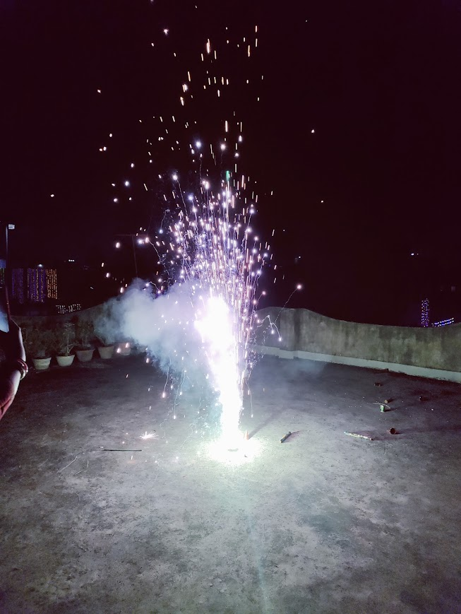 কালীপুজোর সন্ধেতেই দীপাবলি উদযাপিত হয়ে থাকে । তাই কালীপুজোর সন্ধ্যেটা কাটে বাড়িতেই । গত বছরও আমরা বাড়ির ছাদে মাটির প্রদীপ , মোমবাতি এসব দিয়ে আলোকসজ্জা করেছিলাম । আর রাতের খাওয়া দাওয়ার আগে ছাদে বাজি পোড়ানোর উৎসব পালন করি । এরপরে রাতের খাওয়া সেরে রাত ১২ টার দিকে বাড়ি থেকে বেরিয়ে যাই কালী পুজোর প্যান্ডেলের উদ্দেশ্যে । সারারাত ধরে বিভিন্ন প্যান্ডেলে ঘুরে ঘুরে পুজো দেখি । পুজো উপলক্ষে বসা বেশ কয়েকটা মেলা থেকে আইস-ক্রীম, চপ-কাটলেট-রোল এসব খেয়ে একটু ঘোরাঘুরি করি । তবে পুজোর আগে সন্ধ্যেটা সব চাইতে বেশি আনন্দে কাটে । কারণ দীপাবলির সন্ধ্যেতে আমরা বাজি পুড়িয়ে প্রচুর আনন্দ উপভোগ করে থাকি । আজকে তাই দীপাবলির আলোকসজ্জা আর বাজি পোড়ানোর কয়েকটি ফোটোগ্রাফ শেয়ার করতে চলেছি ।