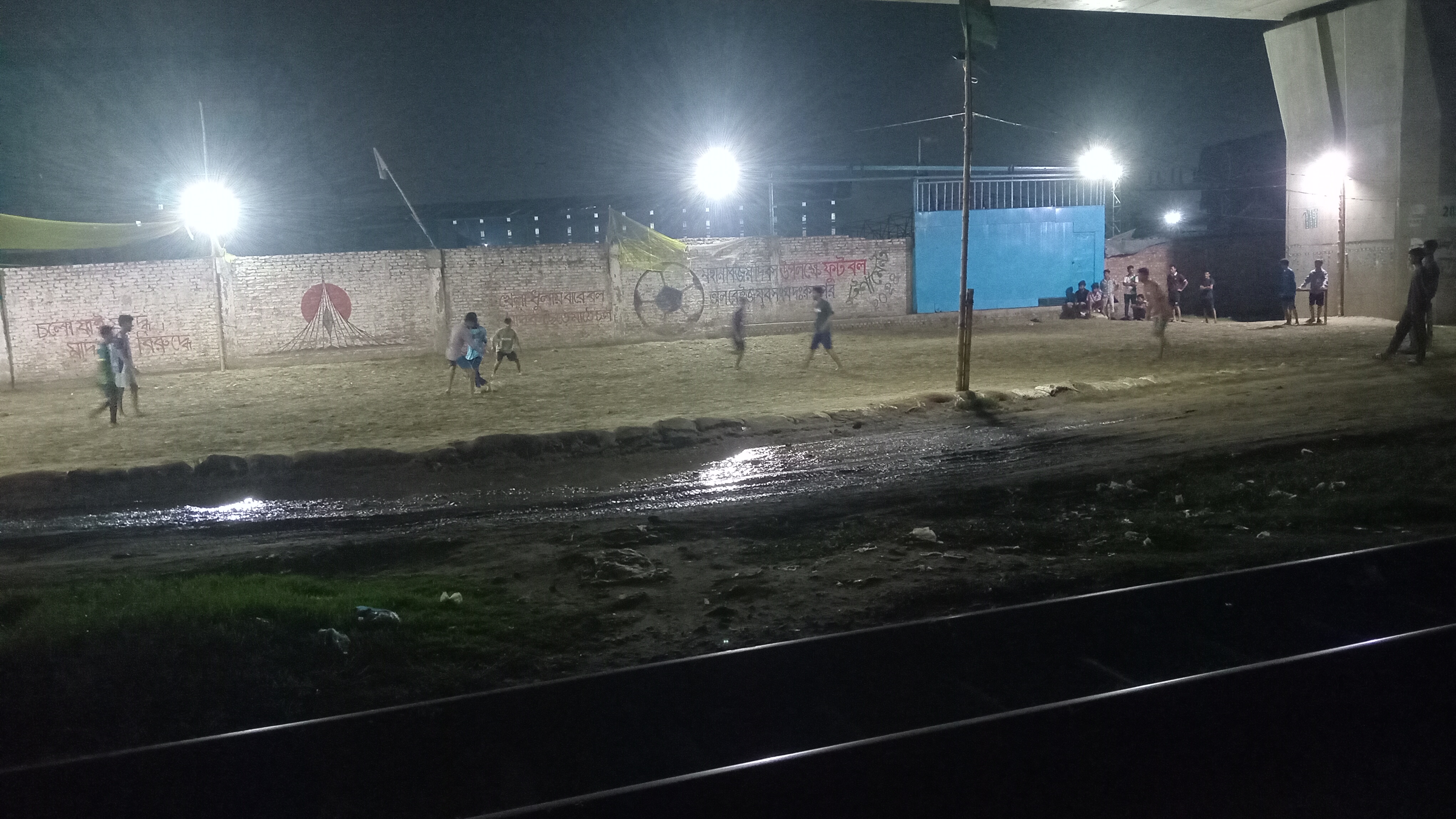 There is a football game going on tonight under the flyover next to the railway line next to our house. I came to watch the game after hearing the excitement about the game from home. Among all the types of games, my favorite is football. As far as I know, football is still the most popular sport in the world. I am fascinated by watching young children play. They play passing in such a beautiful, small field, and when I see them playing, I want to play too.