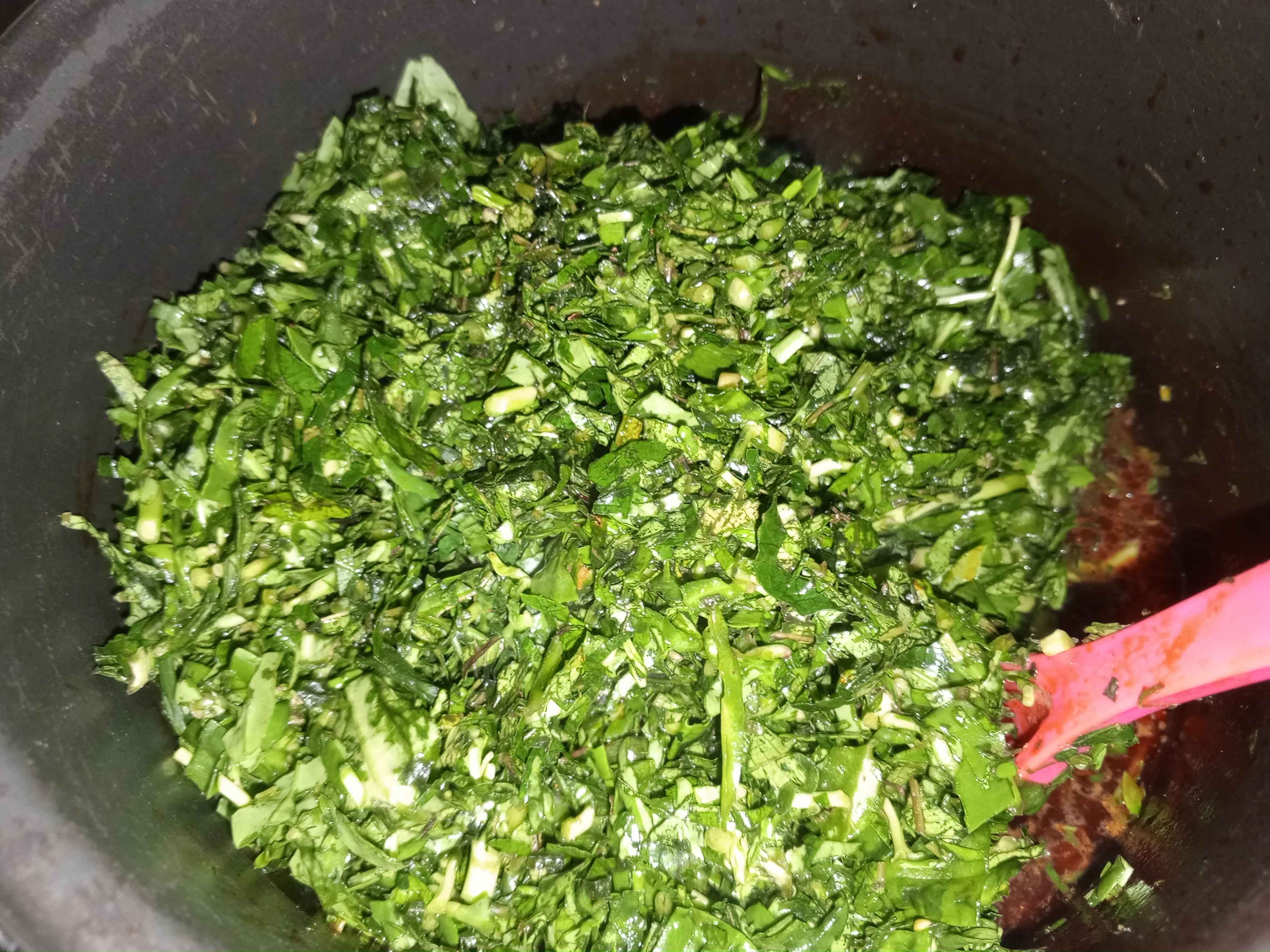 • Lastly before the veggies, add palm-oil to cook for 2 minutes.
