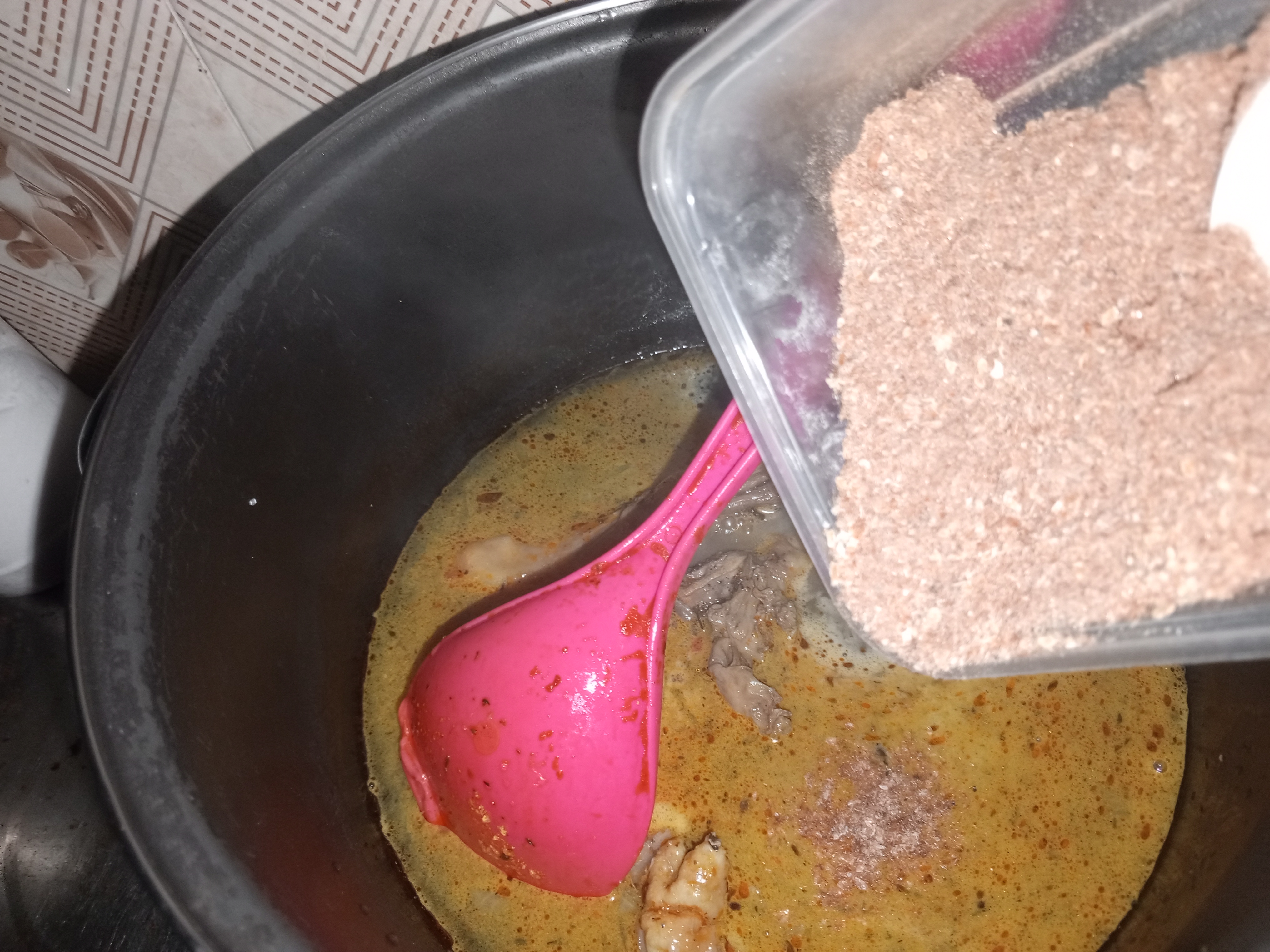 • Add blended crayfish when the meat is soft and cook for some minutes.