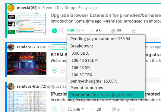 RE: Upgrade Browser Extension for promoted/burnsteem Posts