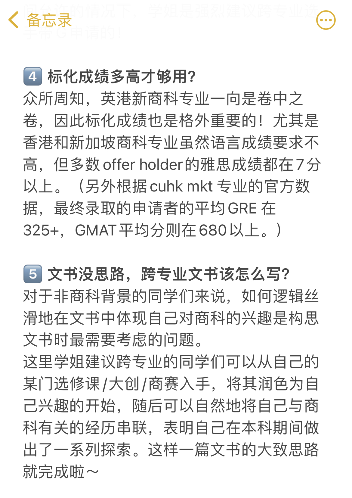 跨申商科选手必看!一篇帮你扫清香港学校申请障碍dreamingoffer (28)in #hk • 3 years ago 又是一年申请季,想必有不少非商科背景的同学在规划申请时会有着诸多疑惑与顾虑:非商科背景如何定校和选择专业;双辅修是否是申请必要条件;如何补充相关实习提高竞争力...... 作为一名23fall的小语种跨申商科选手,我也经历过这些困扰。好在最终拿到了满意的申请结果,收获了包括港大、港中文、曼大商学院在内的多个offer! 本着“淋雨撑伞”的想法,我整理了跨专业申请商科硕士的Q&A,也欢迎大家在评论区留言或私信我们你的申请疑惑!