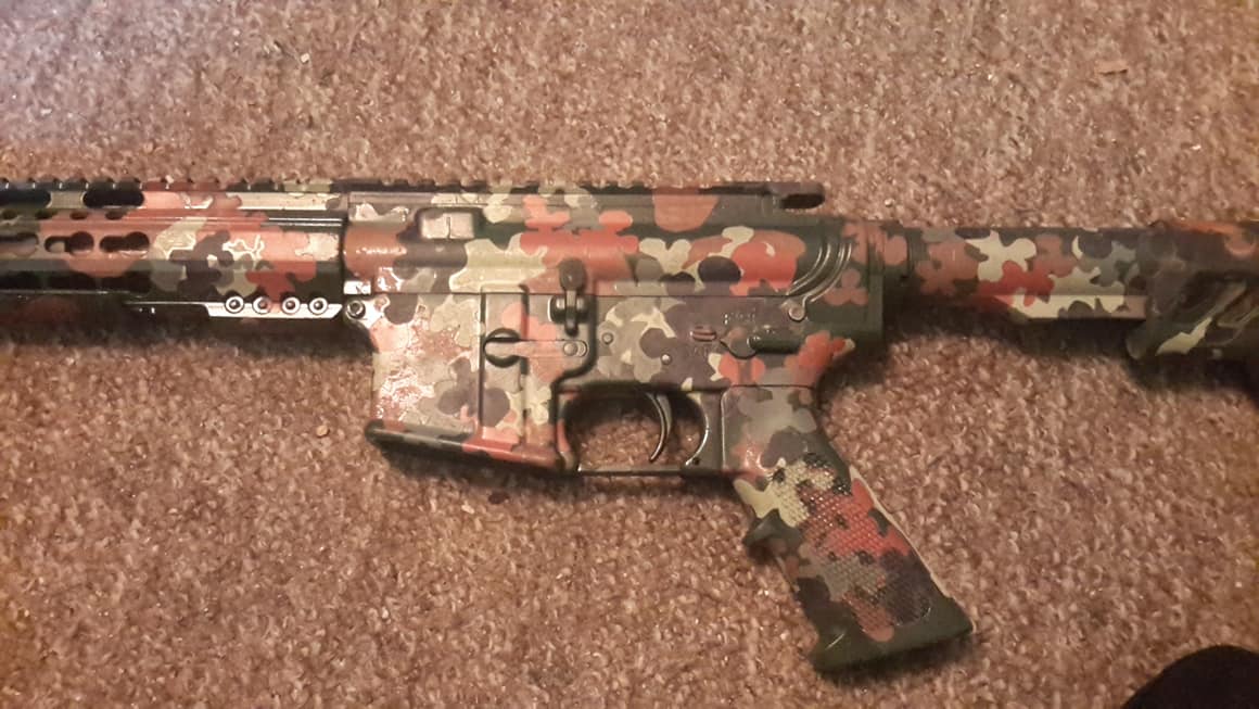 and lastly, my .300 blackout with my own duracote flecktarn camo paint job.