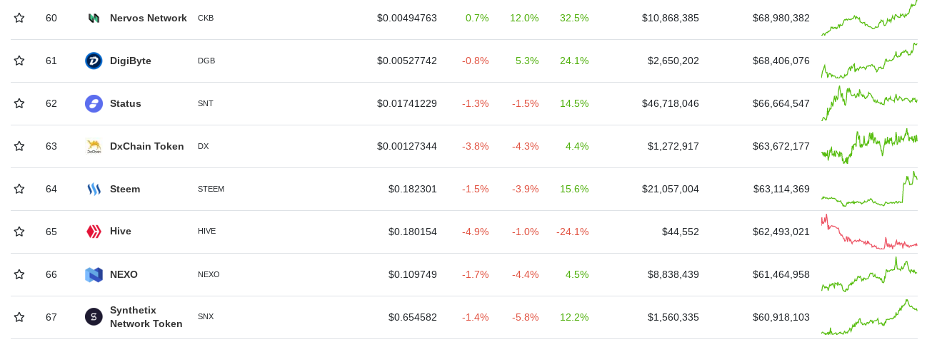 It's funny to see how Hive and Steem are bouncing around each other on the rankings. Although I gotta admit the volume of Hive is painfully low, actually much lower than I would have expected after a number of exchanges opened up for trading Hive...