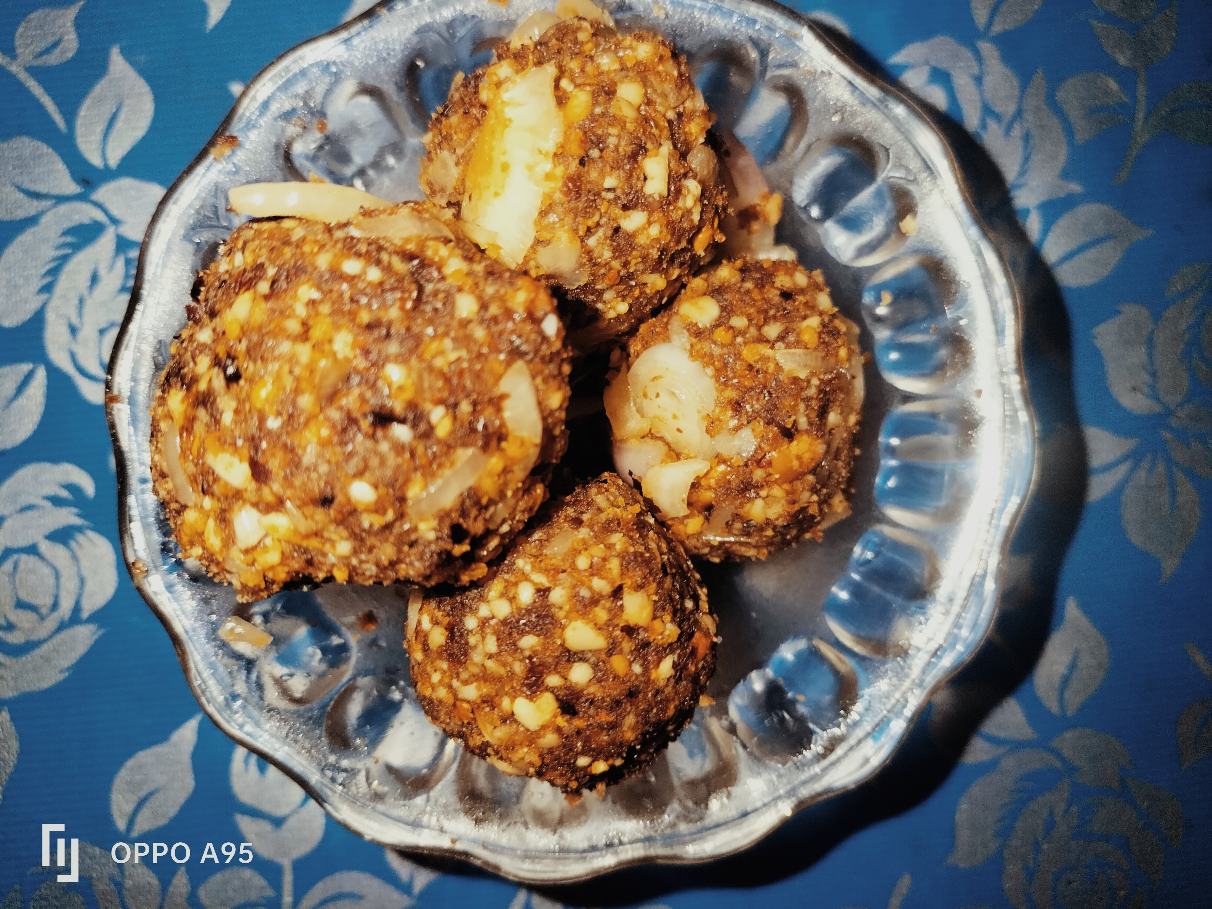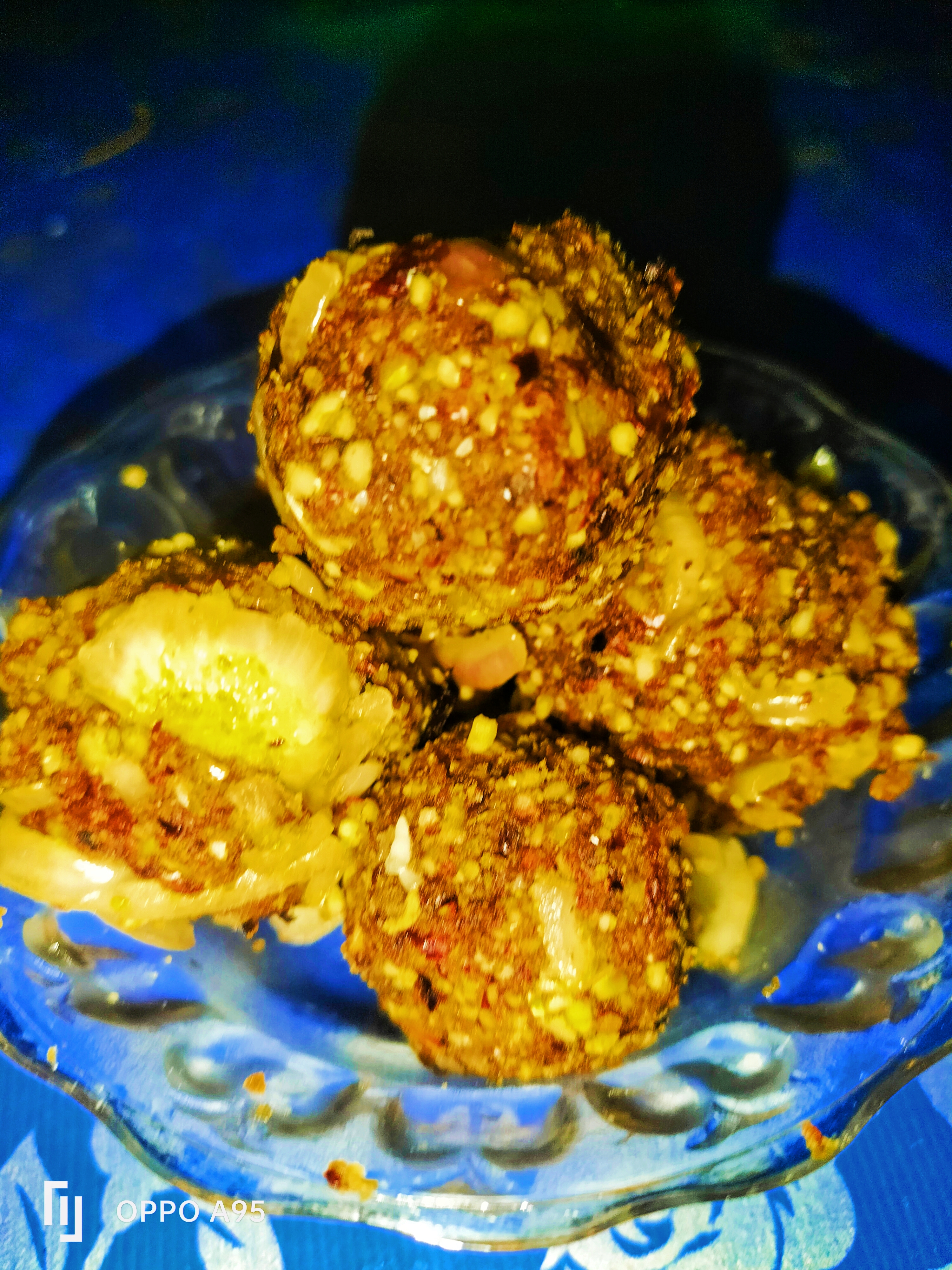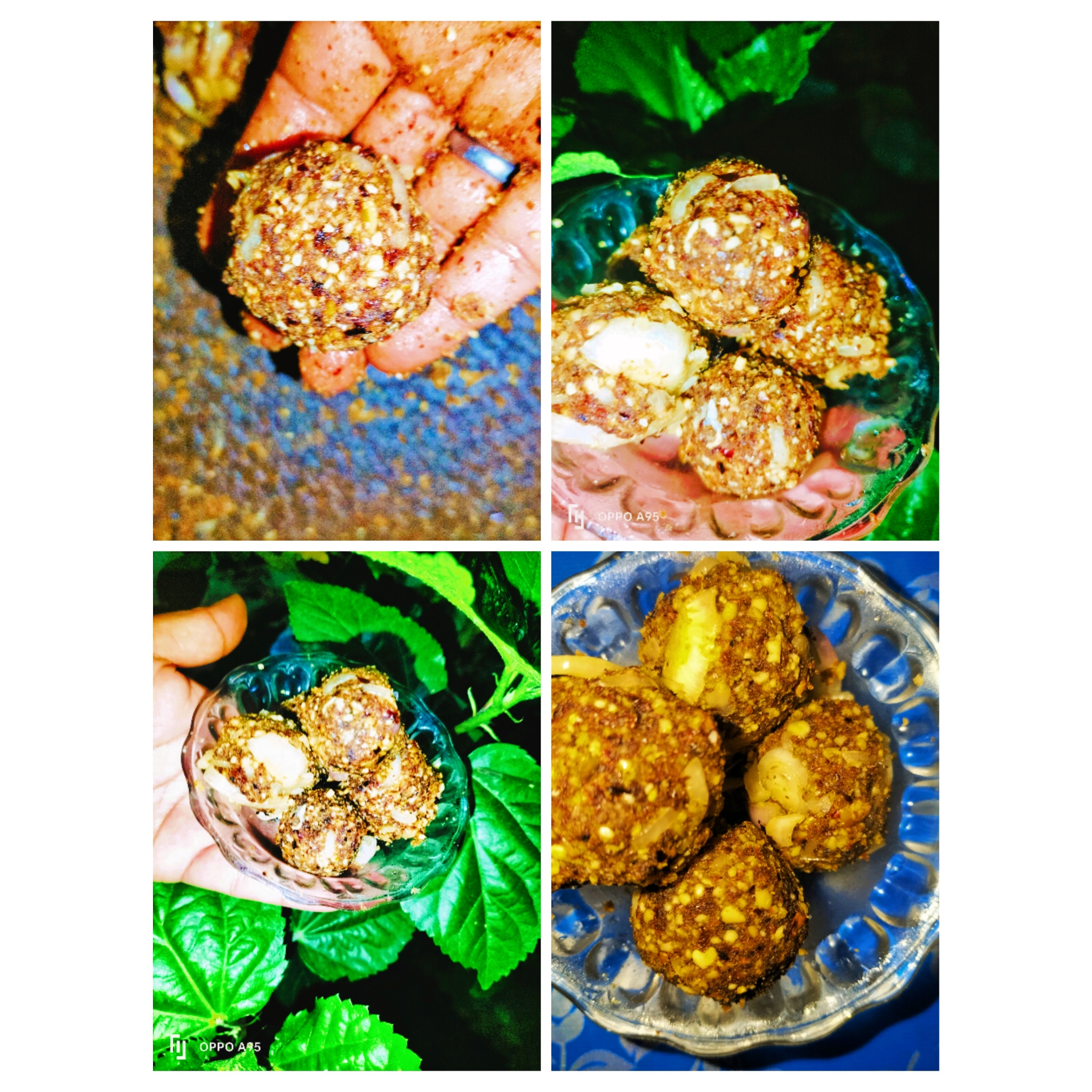 এখন বাদাম মাখা গুলো হাতের সাহায্যে লাড্ডু বানিয়ে নিয়েছি বাদাম ভর্তার।ভর্তা হয়েছে পরিবেশন করে নিয়েছি।