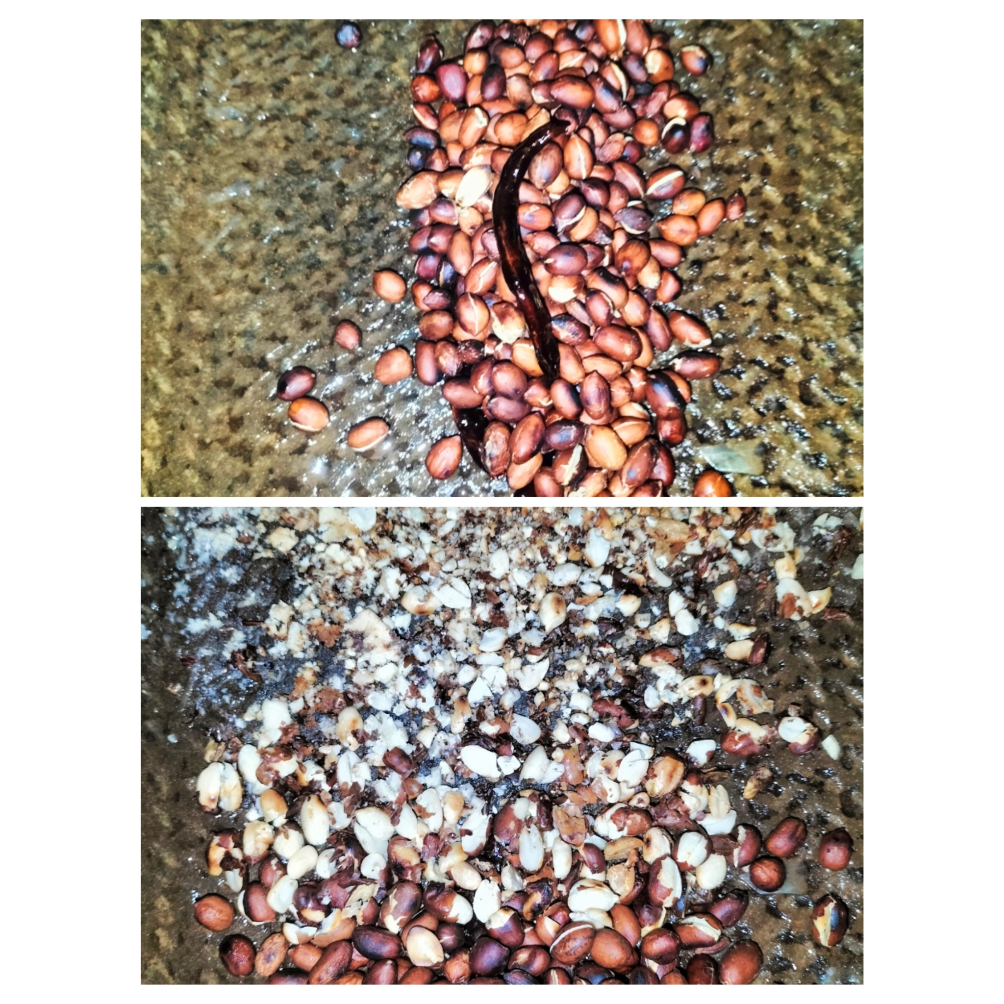 প্রথমে আমি কাঠ খোলায় চিনা বাদাম ভেজে নিয়েছি। কাঠ খোলা মানে তেল ছারা ভাজা।আমি তেল ছারা বাদাম গুলো ভেজে নিয়েছি ভালো করে এবং নামিয়ে নিয়েছি।