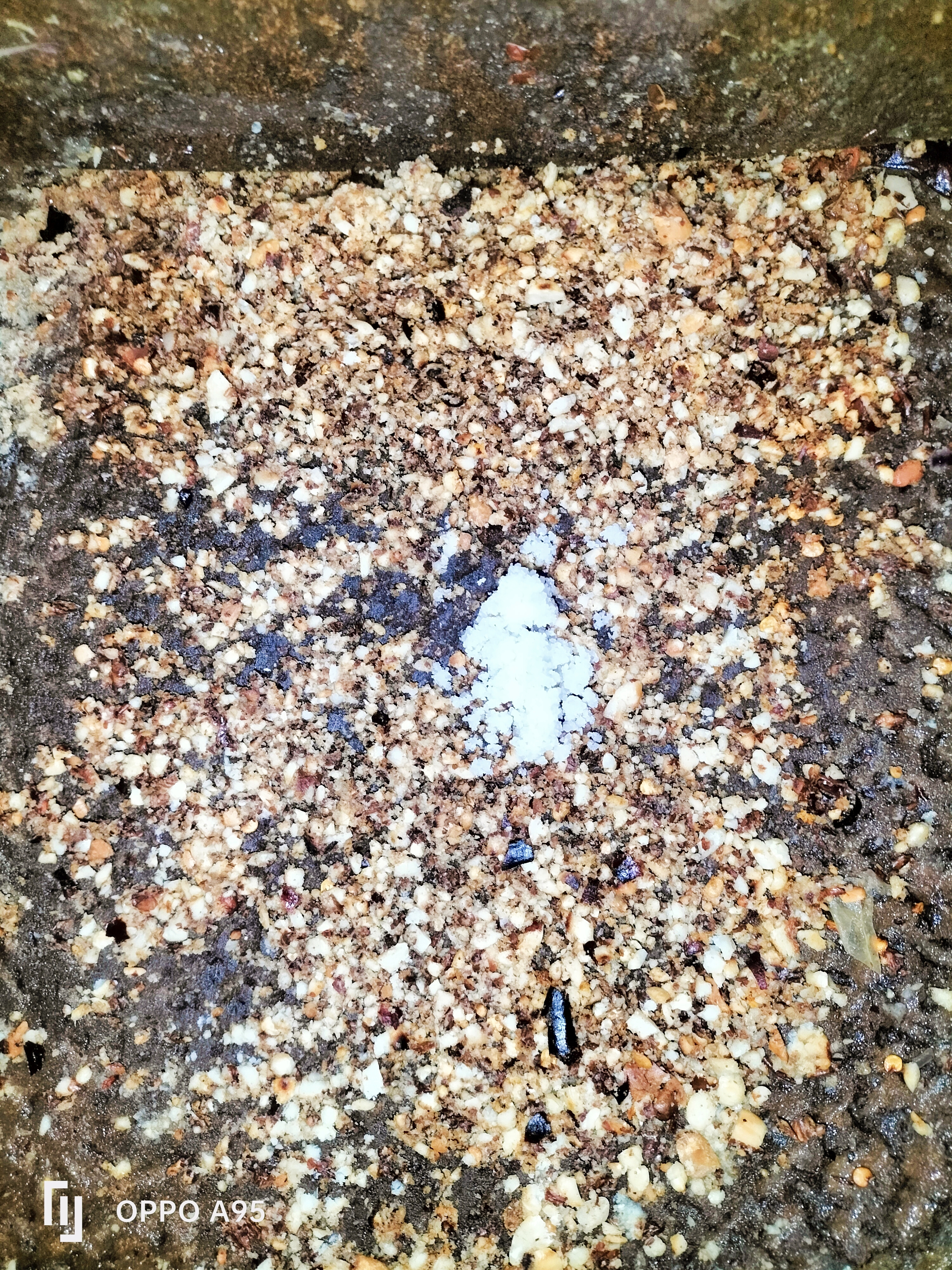 এখন বাটা বাদামে লবন দিয়েছি ও লবন সহ ভালো করে বেঁটে নিয়েছি। একদমই মিহি করে বাটবো না কারণ বাদাম এমন ভাবে বাটতে হবে একটু গুড়ি গুড়ি থাকবে এবং তা খাওয়ার সময় দাতে লাগবে এবং তা খেতে দারুণ লাগে।