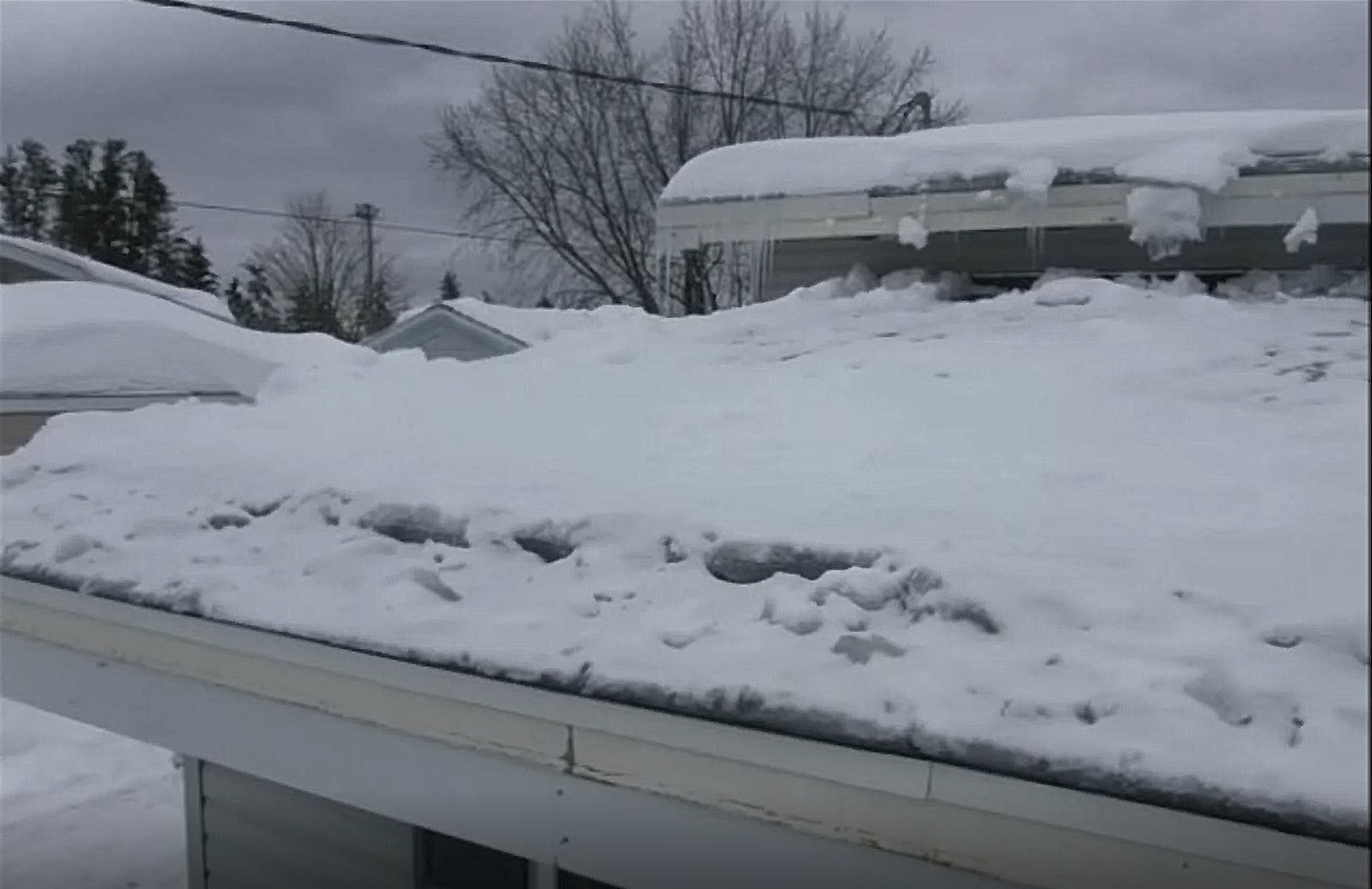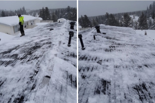 What a great neighbor you are to Leslie, to clear her roof just in time before a blizzard which surely would have caused her roof to fail and cave in.