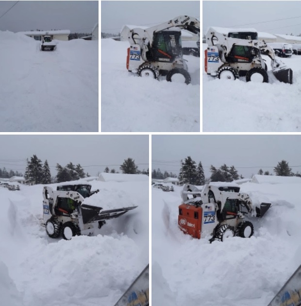 What a huge amount of snow. You definitely need that bobcat to move that much snow around. The only place to put it is the center of your yards and keep going up. Wow and you have 2 more months of this!