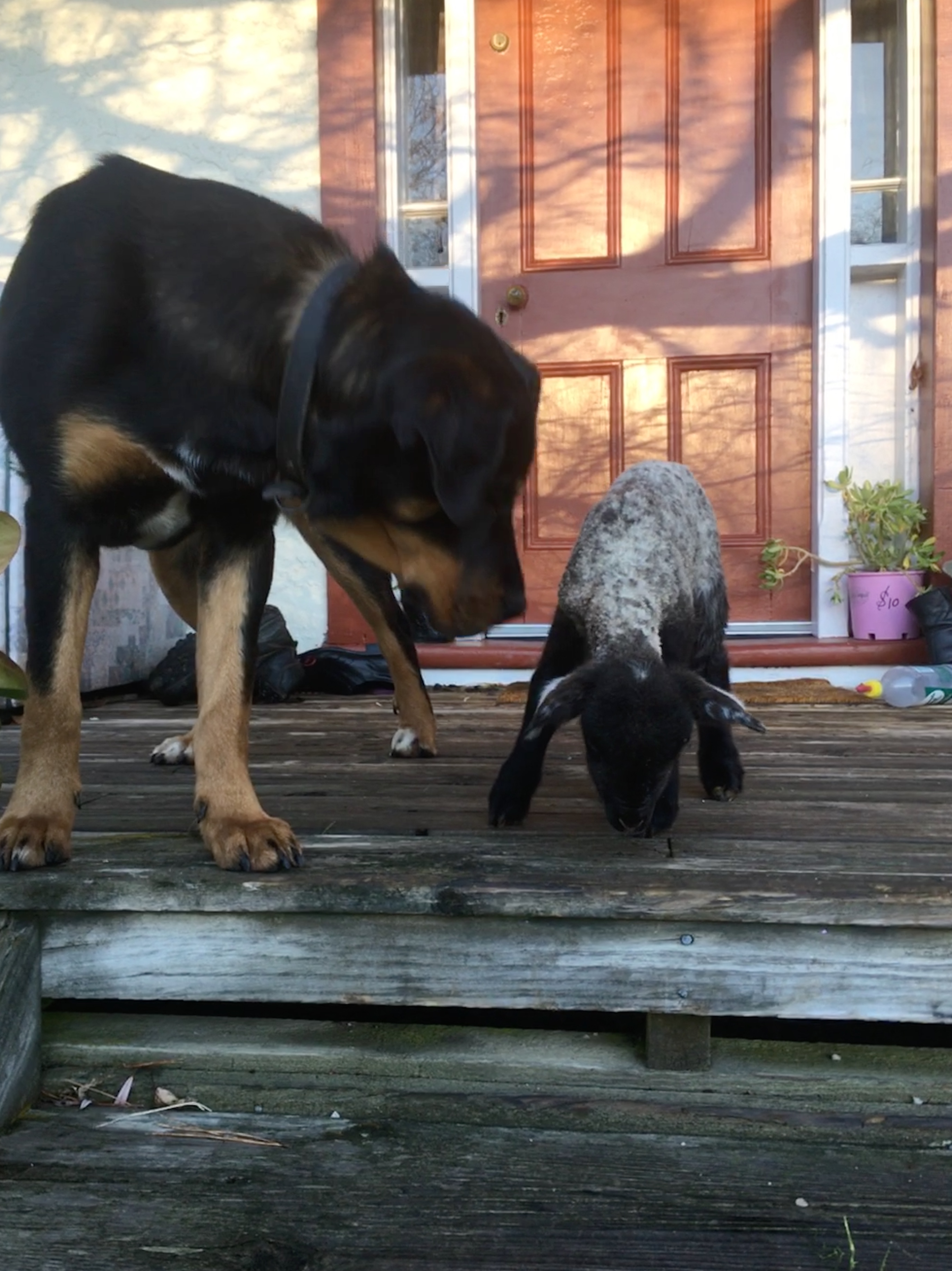 Tinker and Maisy are quickly becoming good friends. Interesting friend for a sheep dog to have for sure!