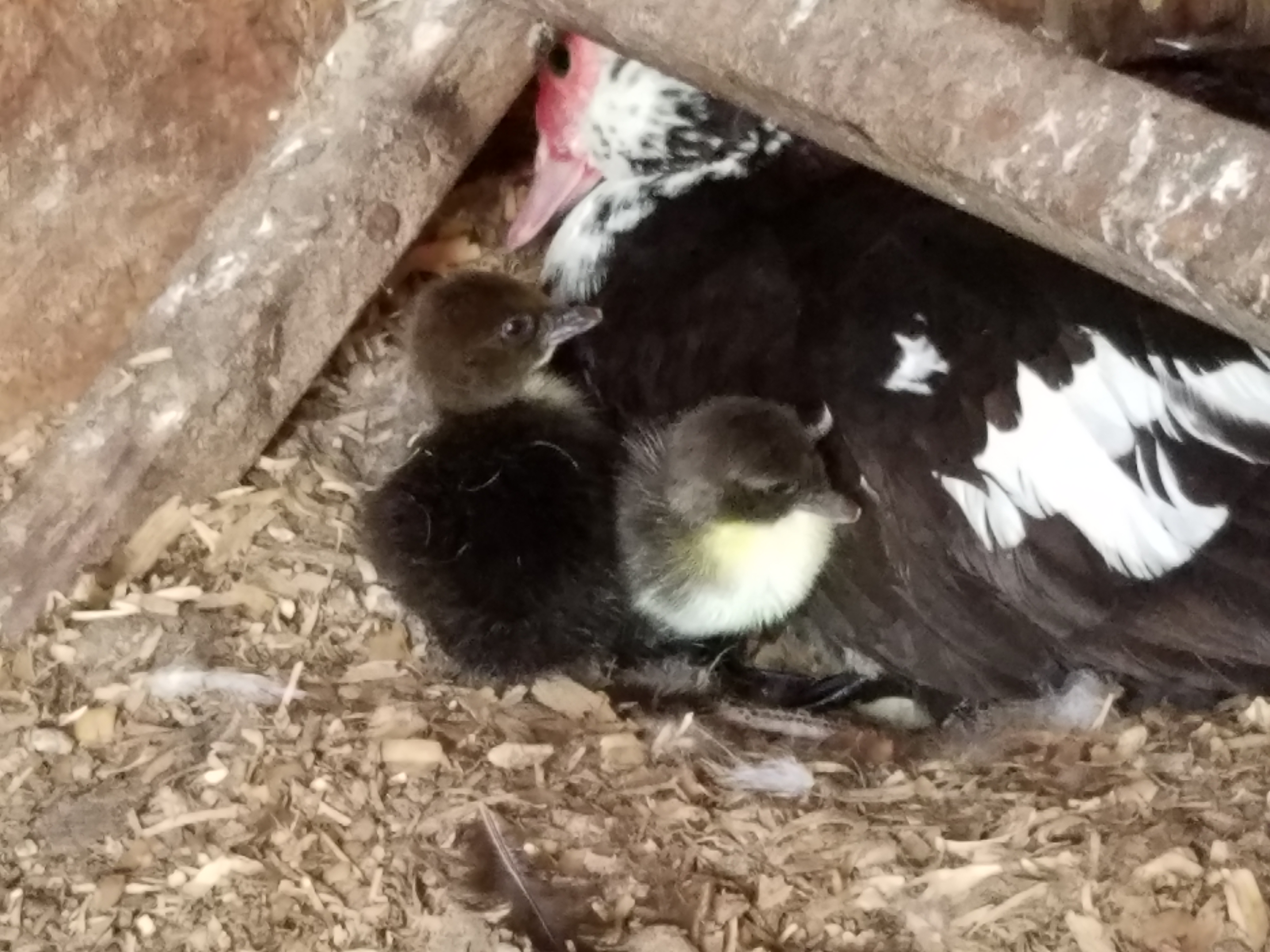 But in some better news, I've had two more ducklings hatch out of another clutch. We'll see if that's it or not. Unfortunately, these look like muscovy/cayuga mixed so they will be mules. A full muscovy will look like the one in the previous picture. Most domesticated ducks are derived from mallards. Muscovies are not. The two are close enough to breed, but the resulting offspring is sterile. So I won't be selling them because I don't want to sell people sterile animals. But that doesn't stop them from being VERY cute.