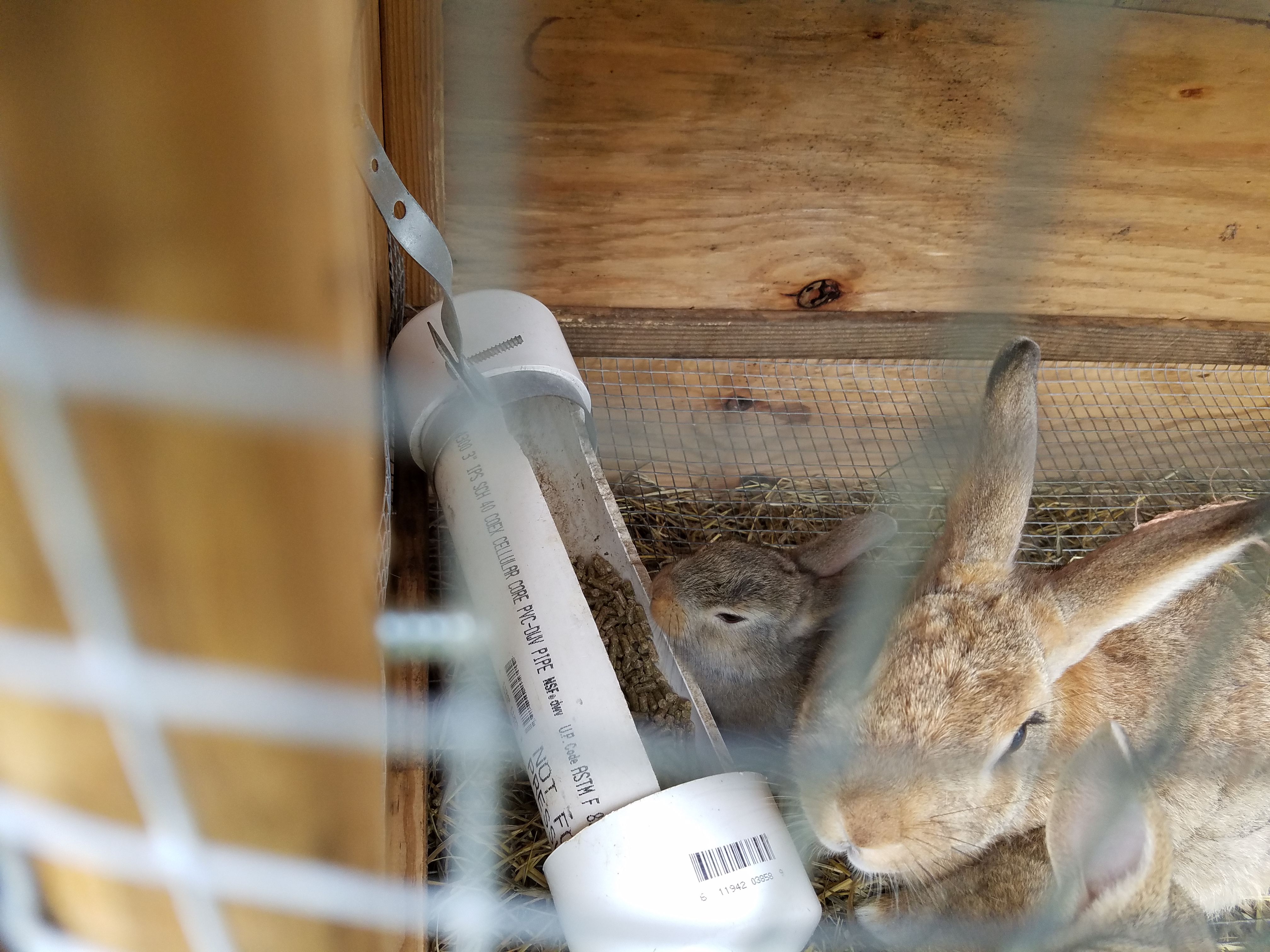 The baby bunnies are also doing good. Getting bigger by the day it seems. And now they're starting to eat and drink with momma. Our other doe also had some more babies and I've made a new cage to keep them safe. That will be in the next post. I haven't taken a picture of the new babies yet because I didn't want to disturb the momma and babies too much. I had to move them to the new cage and that's disturbance enough.