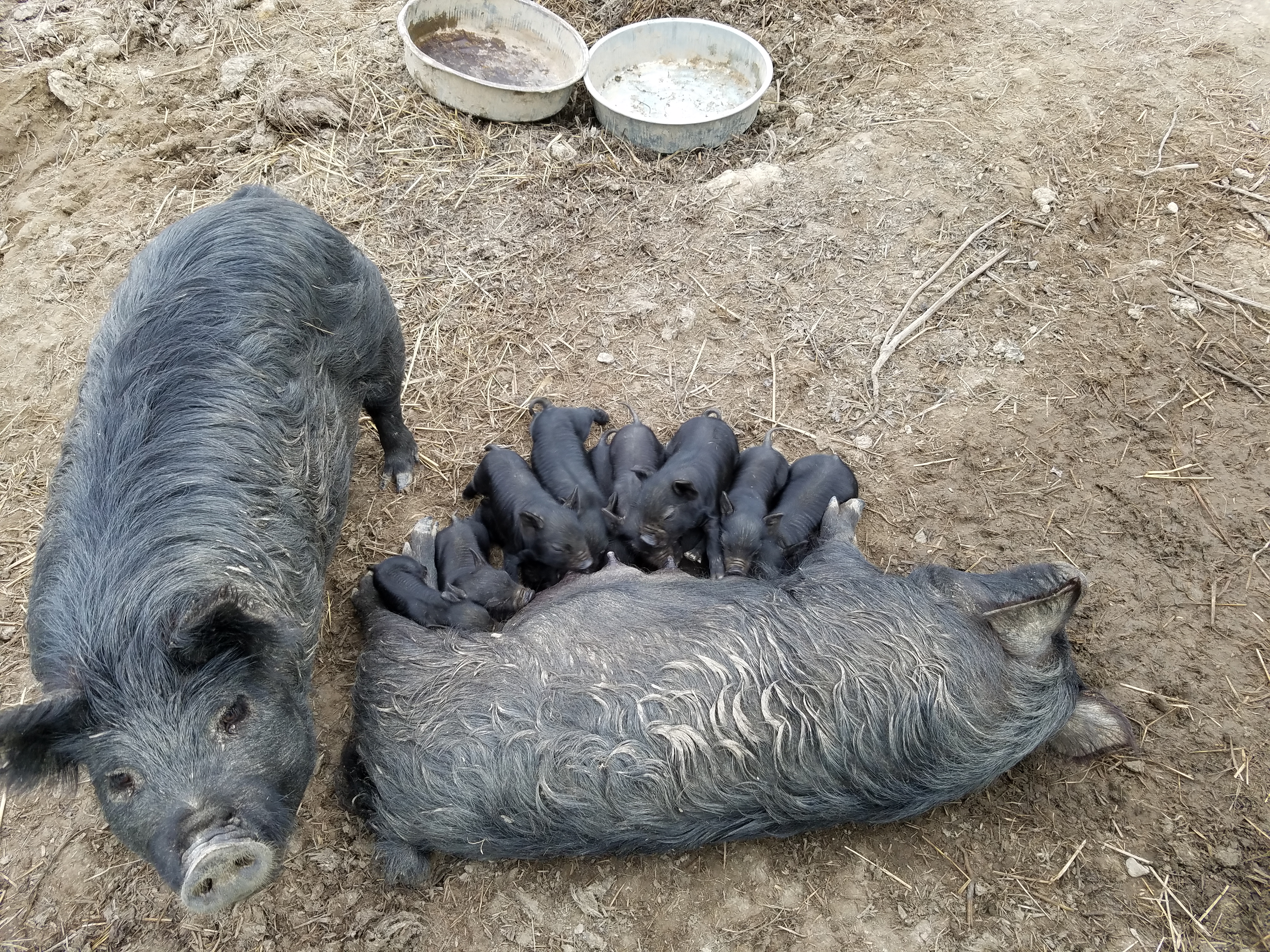 Most of the little piggies are just over a week old and the other 4 will be a week old tomorrow. To start this post off, I've included a video that I took today of the little ones waiting while their mommas ate their breakfast.