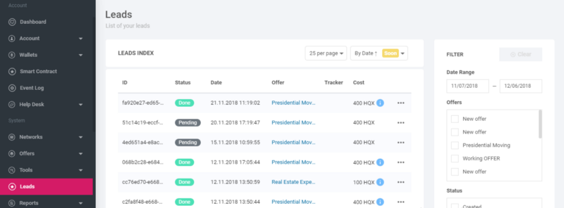 At the same time, the tracker can track all the actions of a potential client on the target site and record transitions, clicks and other events. Data on actions that are target leads are sent by the tracker to the blockchain. The tracker generates links to track the source of the transition to the target site.