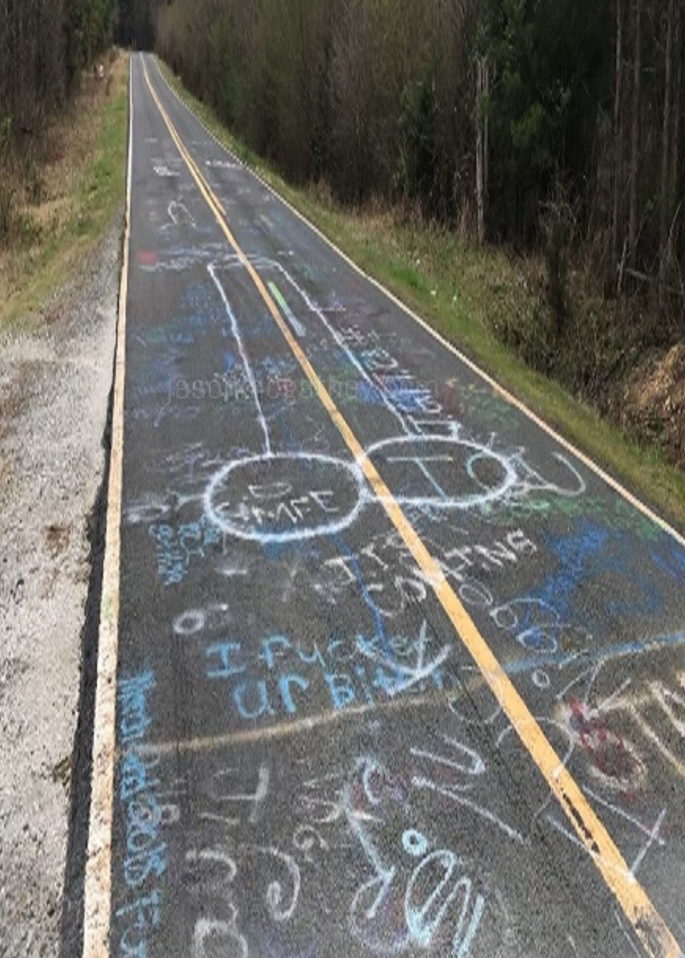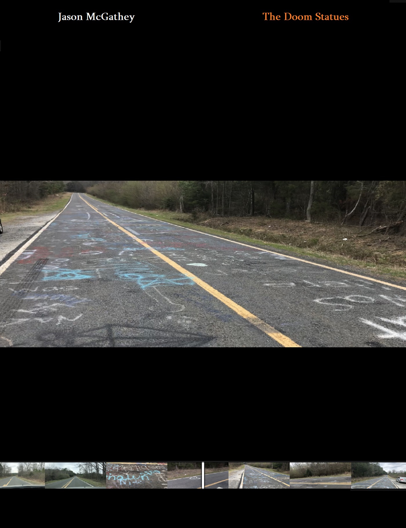 Back this way, as elsewhere, they do encounter the occasional driveway leading to a house, although these are almost exclusively sparkling, mint new gravel paths cutting through the woods, back to homes which are in some cases not yet built. Though out here even these are sparse, this has the makings of a burgeoning sub-development, which brings with it the hope of civilization. Still, apart from spotting a few carpenter looking types yanking supplies from the bed of a battered red pickup truck, off to the right hand side of the road, near one of these sites, they encounter no one. After another couple miles of this, Jeremy decides he’s had enough, and makes to turn around.