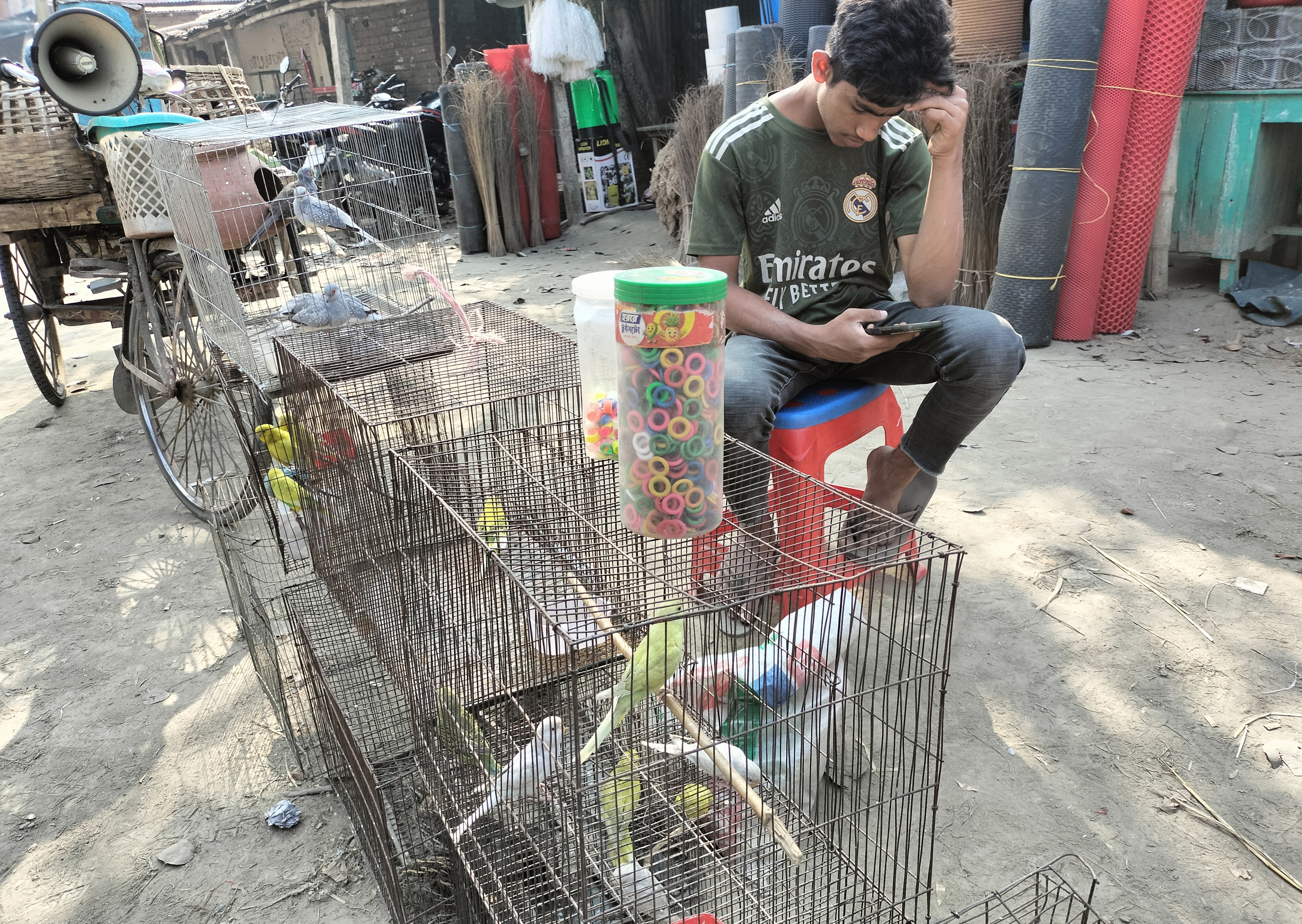 When I entered the bird market, I took some very nice pictures there. First, you can see that there were several pigeons kept in a storm. I collected the pictures of the pigeons very beautifully on my mobile camera. The pigeons were of different colors, which was really amazing to me. Each pigeon is of a different color, which makes it even more beautiful to see, and I really liked the crowd of buyers and sellers there. Next to the seller of the poem, there was a bird seller who has been selling birds since he was a child. There were small birds in his cage, which I really liked to see. The birds were of very beautiful colors and the birds were calling with the sound of chirping. It is really a wonderful bird market.