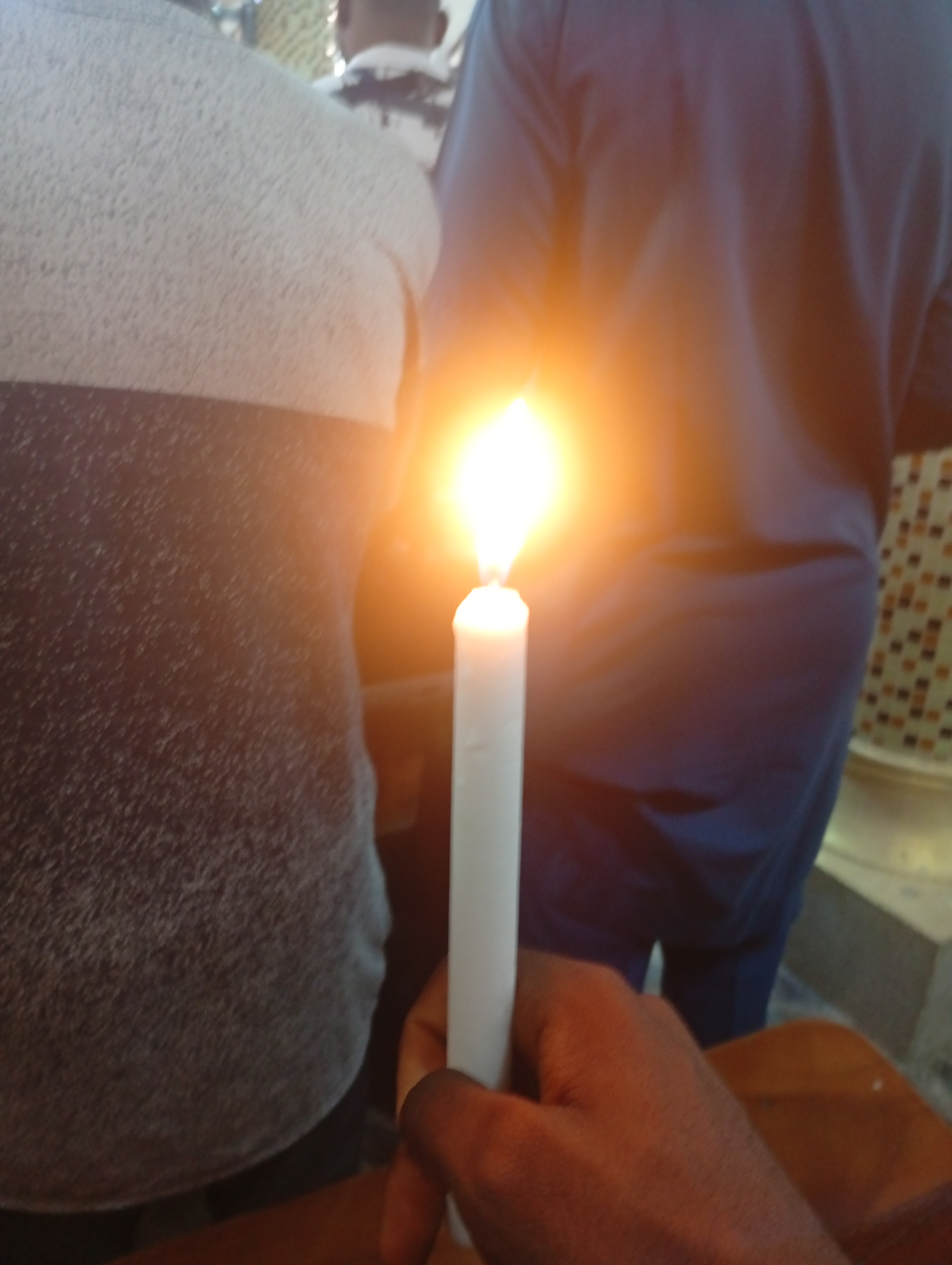 This is a shot taken during the mass, l and my sister holding our candle before renewing our baptismal vows.