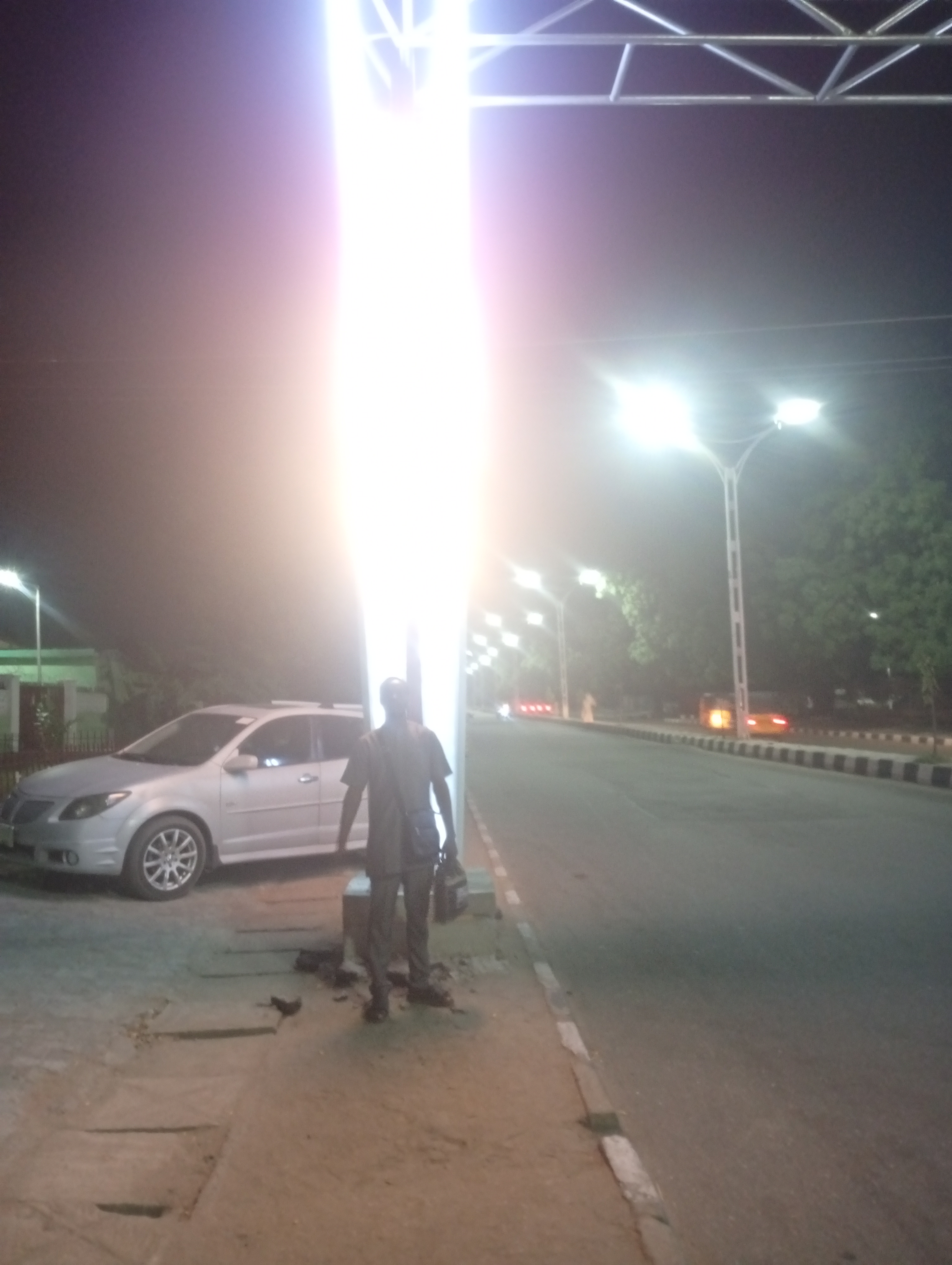 Where standing she took this shot of me. Across the road. The amazing thing with this state (Borno state) at night is that the state isn't dark it really bright. Street lights are placed on every corners and junction you go to or find yourself in.