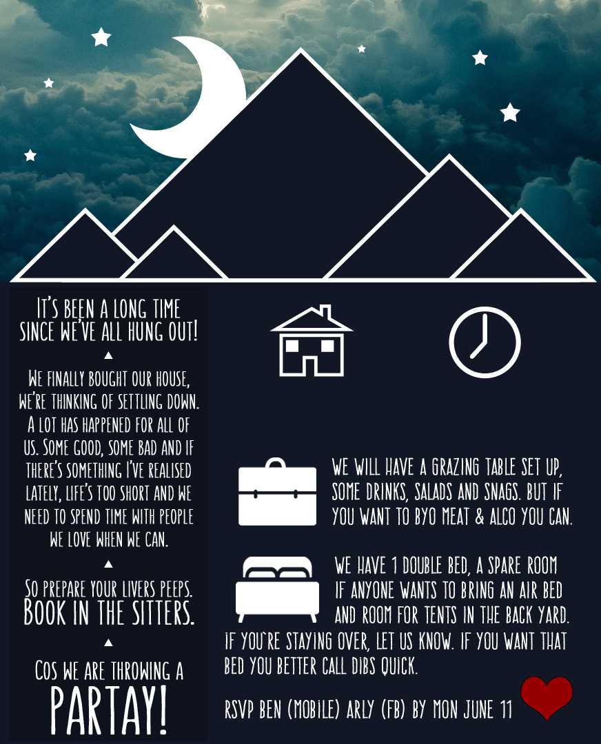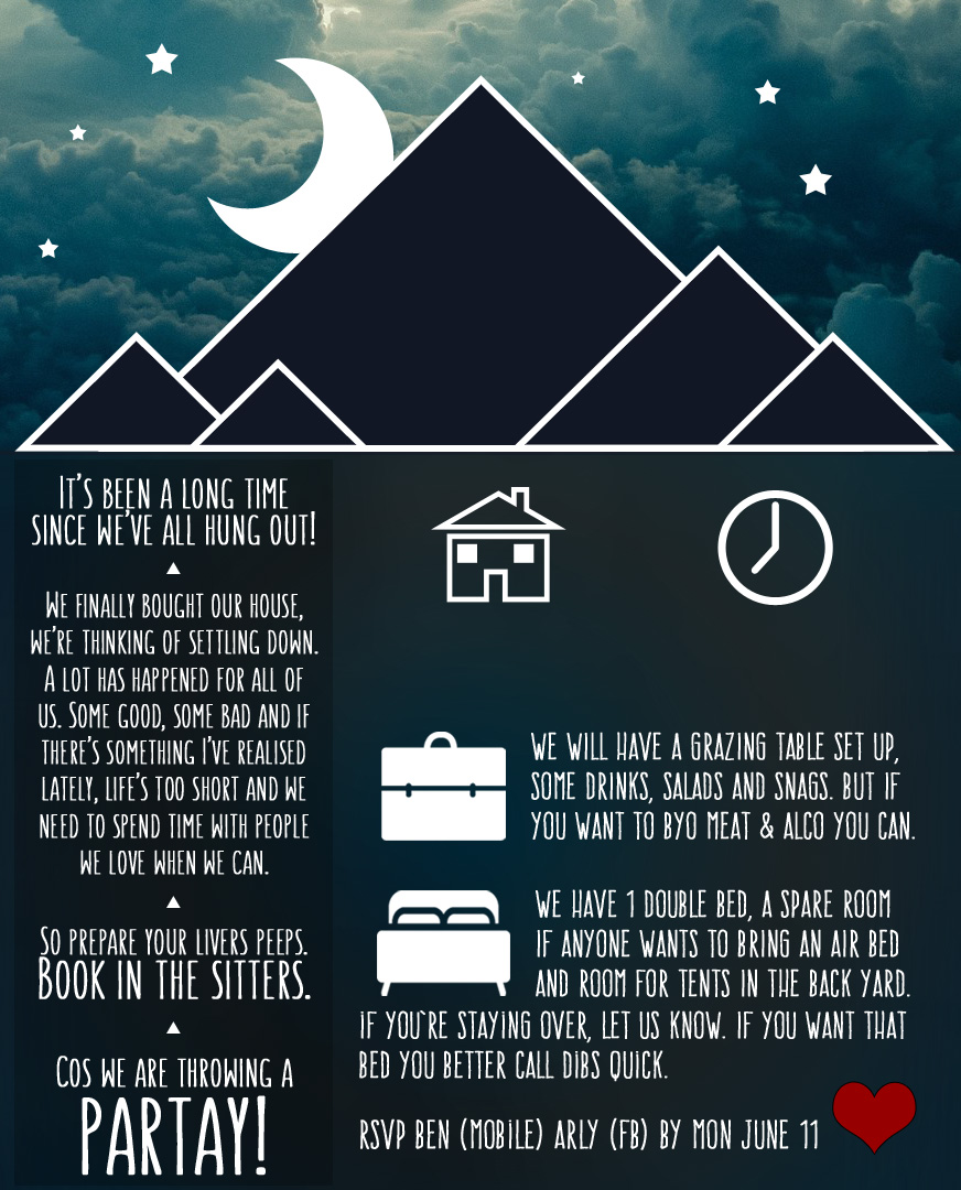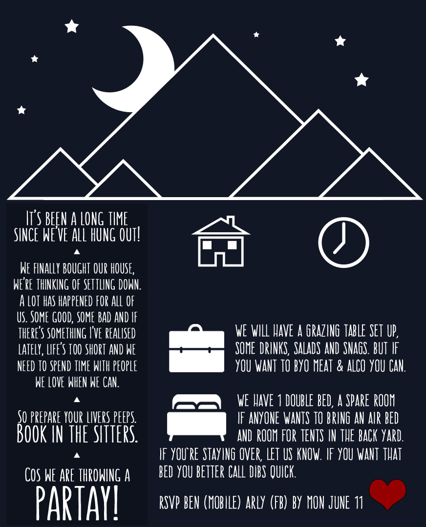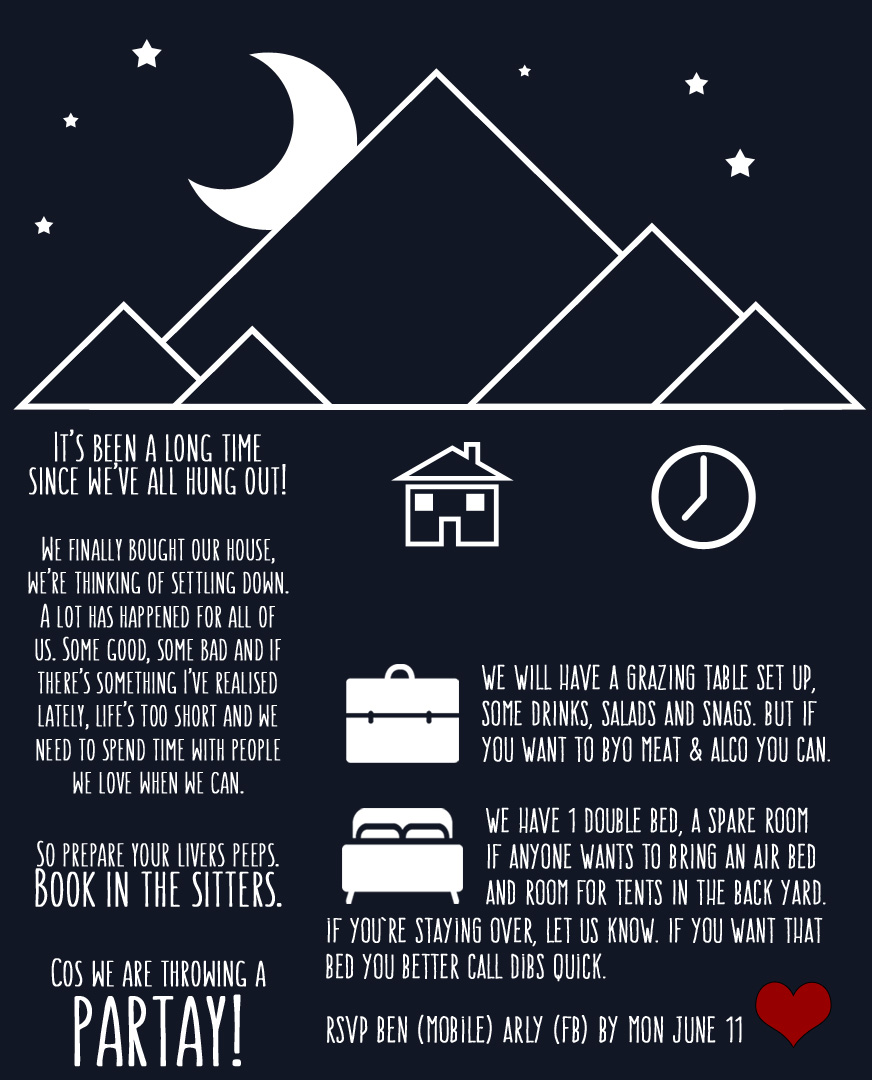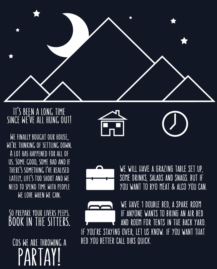It's a pretty easy and straightforward invite. Didn't take much time to whip it up and I reckon it does the trick.
