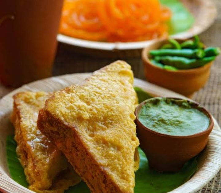 반죽에 담그기 전에 빵 조각에 으깬 감자, 파니르(인도 코티지 치즈) 또는 치즈를 채워 넣을 수 있습니다.