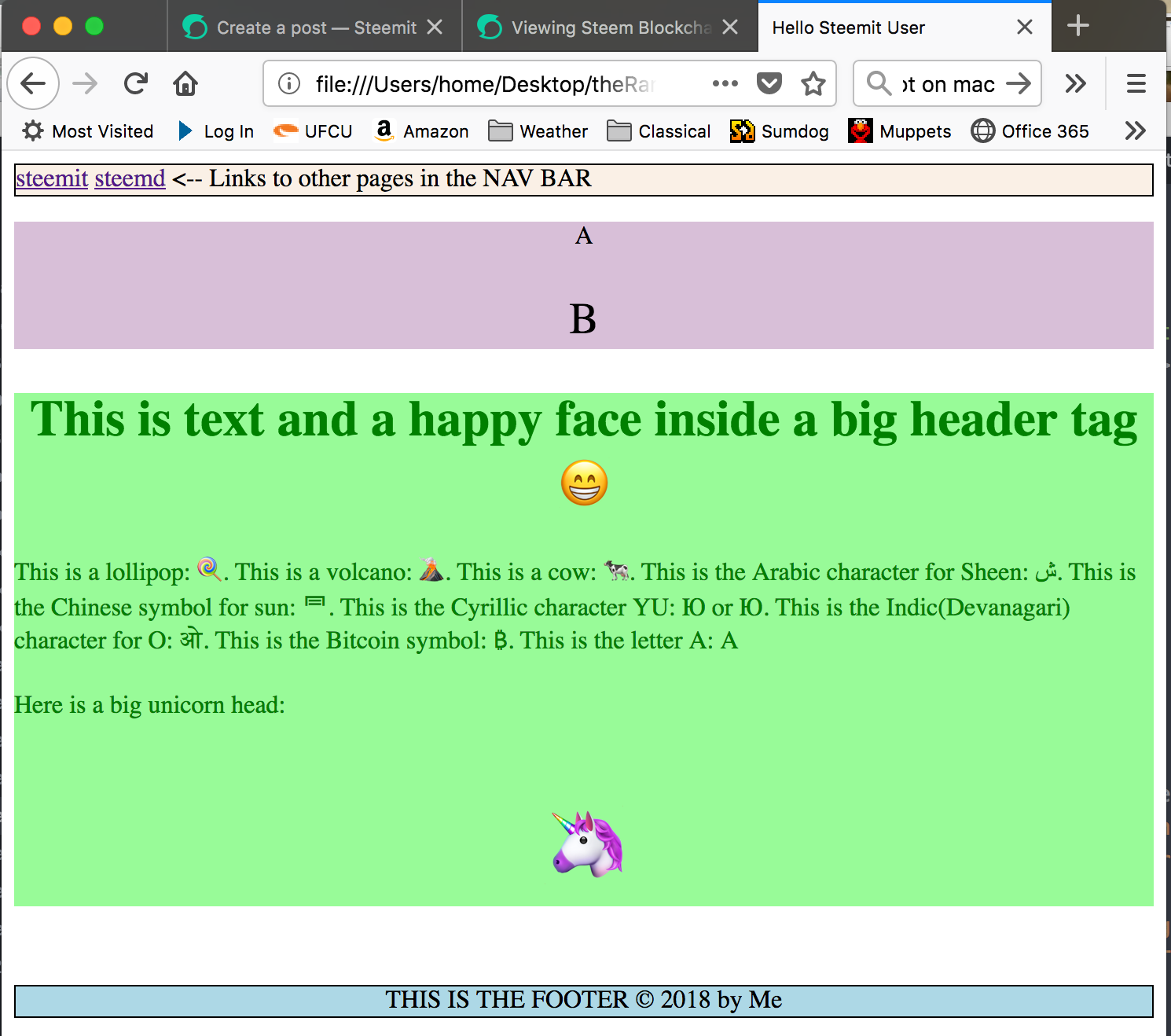 Viewing Steem Blockchain Data in a Web Browser. Part 3: Very Basic HTML meta Tags, nav and footer Bars, divs, and Entities