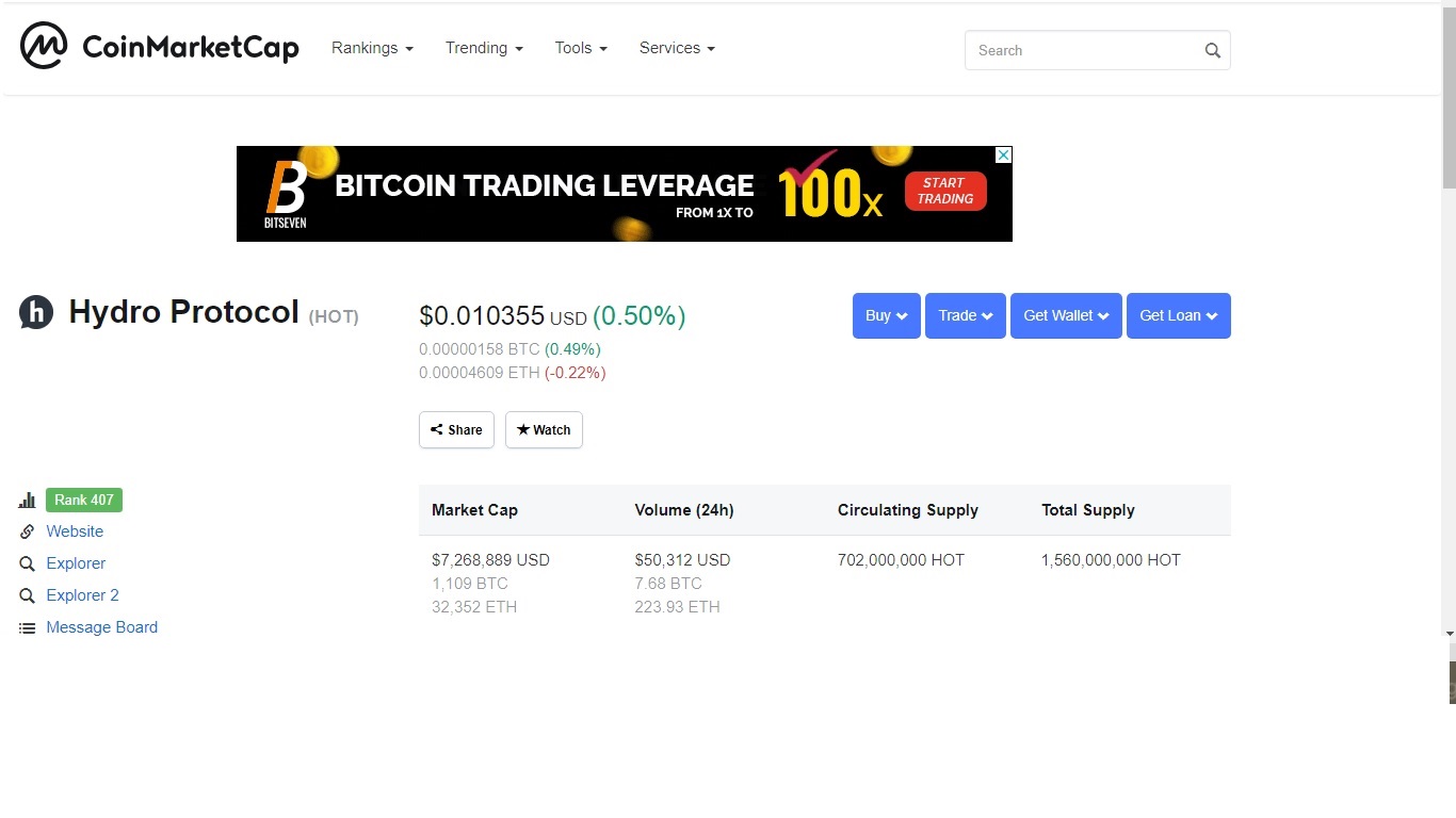 Hydro is airdropping daily a pool of HOT tokens, which will be rewarded to all airdrop participants. Current price: 1 HOT = 0.01 USD