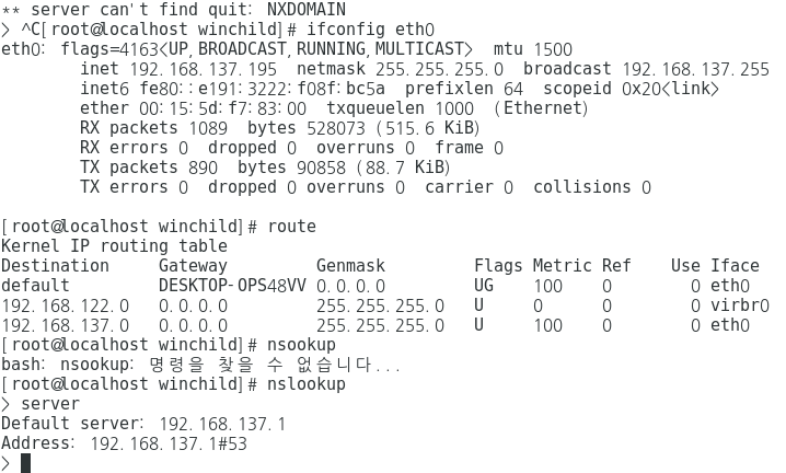 그리고 호스트 컴퓨터의 이더넷 속성을 불러서 "공유" 탭에서 "인터넷 연결공유" 체크 박스를 설정한다. 설정할때 이미 설정한 IP 주소 (앞에서 설정한 192.137.0 1) 과 공유한다는 메시지 박스가 나타난다.