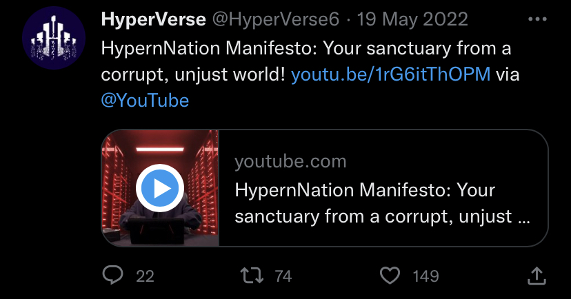 Above is the last tweet made by the Official HyperVerse team on the 18th is May when we discovered that something might be wrong with the system and it’s continued health, the very next day, on the 19th of May 2022, we lost total control on that platform and that was when the shift happened from HyperNation.