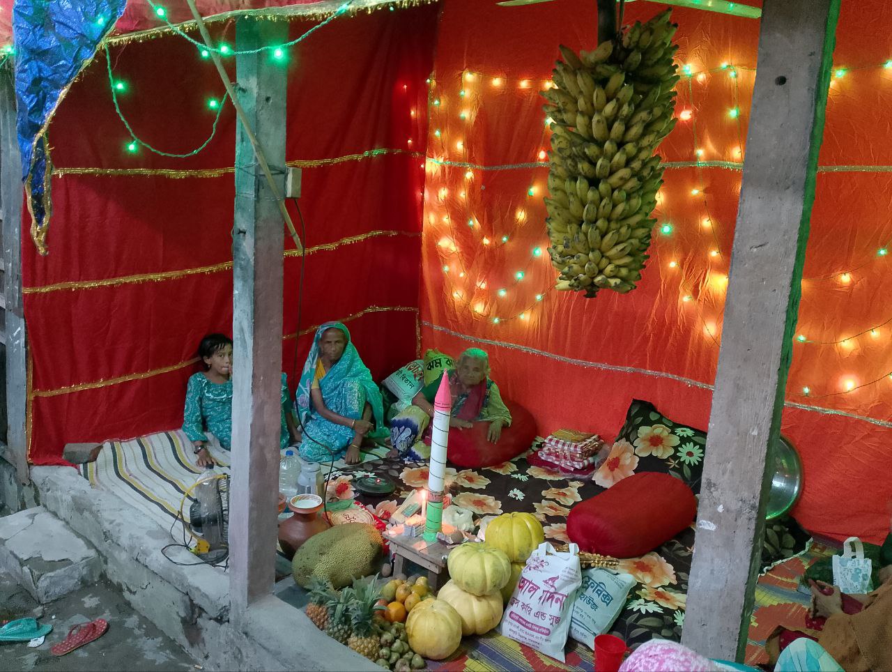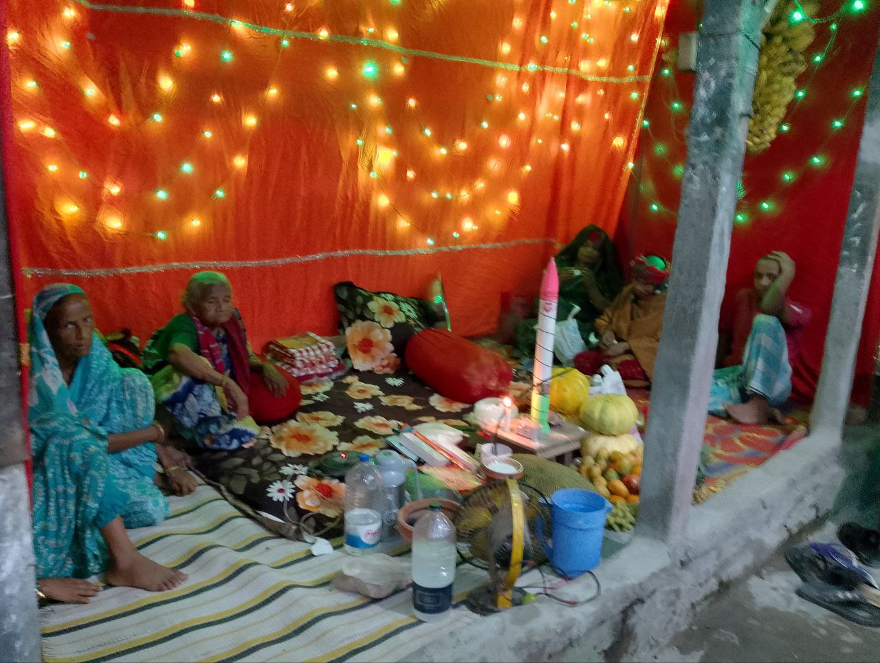সেখানে কিন্তুু তেমন জায়গা নেই। অল্প একটু খালি জায়গাতে ব্যানপার্টি ঢোলবাঁশি বাজাচ্ছে। তাদের সাথে পুরুষ মহিলা নাচানাচি করছে। আমি আর বেশিক্ষন সেখানে দাড়াইনি। ফটোগ্রাফি গুলো নিয়ে দ্রুত সেখান থেকে প্রস্থান করলাম। বাড়ির বাহিরে এসে দেখি কিছু ভক্ত বৃন্দ বসে আছে। তাদেরকে দেখলে মনে হবে না তারা স্বাভাবিক মানুষ। শরীরের পোষাক,চুল দাড়ি দেখে পাগল পাগল মনে হয়। আমি কারো সাথে কোন কথা না বলে বাসায় চলে আসলাম। পরের দিন অফিসে যাওয়ার সময় দেখলাম বড় বড় ডেগছির মধ্যে খিচুড়ি রান্না করা হচ্ছে। সব ভক্ত বৃন্দ সহ এলাকার মানুষ এই খিচুড়ি খাবে। তখন বুঝলাম রাতের বেলা কেন তারা ঢোলবাঁশির আওয়াজ সহ্য করেছে।