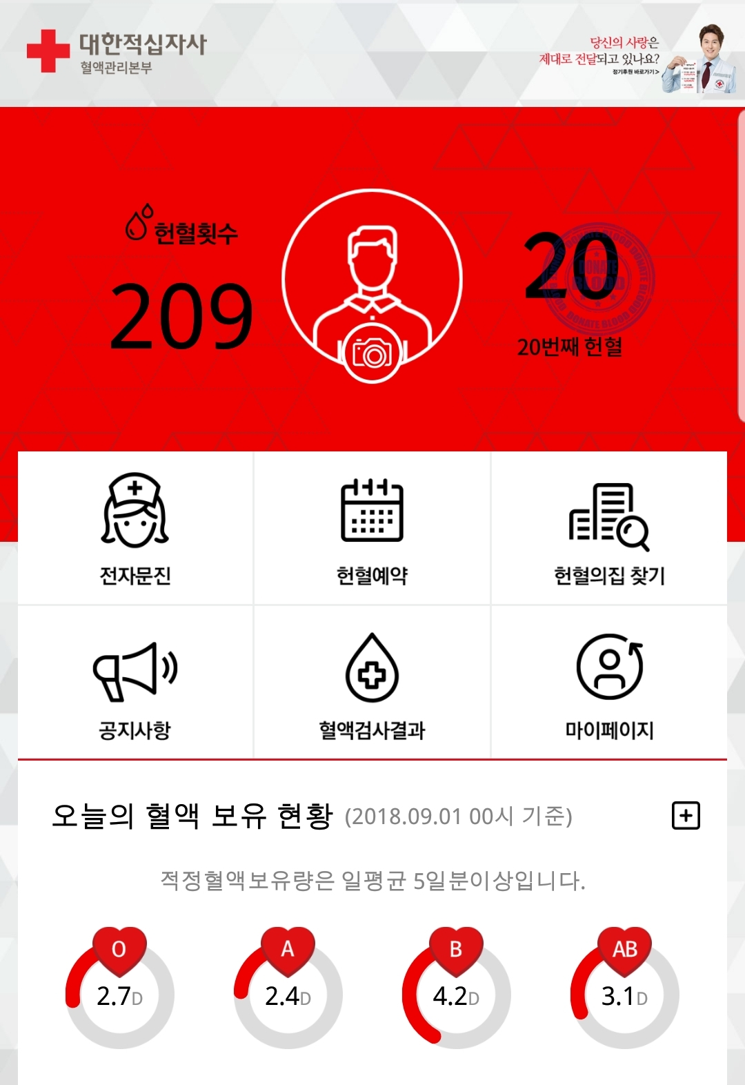 헌혈 209회