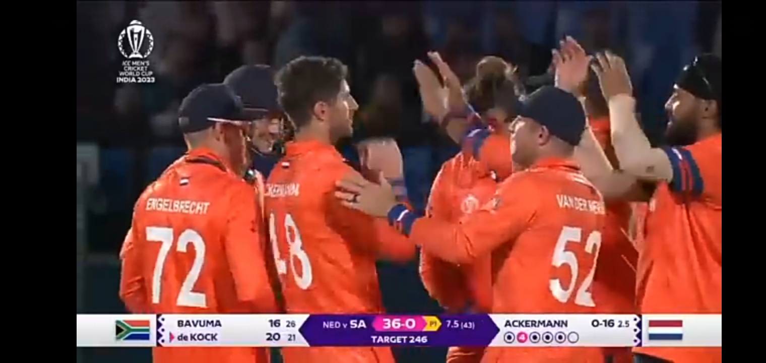 যাইহোক একটু পেছনে ফিরে যায়। ২০২২ সালের টি টুয়েন্টি বিশ্বকাপে দূর্দান্ত খেলছিল সাউথ আফ্রিকা। গ্রুপ পর্বের শেষ ম্যাচে সাউথ আফ্রিকা মুখোমুখি হয় নেদারল্যান্ডের। কিন্তু যেটা না হওয়ার সেটাই হলো সেদিন। নেদারল্যান্ডের কাছে অনাকাঙ্খিতভাবে হেরে গেল সাউথ আফ্রিকা। ফলে গ্রুপ পর্ব থেকেই বিদায় নিশ্চিত হয় সাউথ আফ্রিকার। তারপর কেটে গেছে একটা বছর। ওয়ানডে বিশ্বকাপের প্রথম দুই ম্যাচে অসাধারণ খেলে সাউথ আফ্রিকা। প্রথম ম্যাচে শ্রীলঙ্কা কে বড় ব্যবধানে এবং দ্বিতীয় ম্যাচে শক্তিশালী অস্ট্রেলিয়া কে হারিয়ে দেয় সাউথ আফ্রিকা। ব্যাটিং বোলিং দুইটাতেই বেশ ভালো করে সাউথ আফ্রিকা। গতকাল বিশ্বকাপের ম্যাচে মুখোমুখি হয় নেদারল্যান্ডস এবং সাউথ আফ্রিকা। ম্যাচটা ছিল বৃষ্টি বিঘ্নিত। ম্যাচটা হয় ৪৩ ওভারের। সবারই ধারণা ছিল সাউথ আফ্রিকা ম্যাচটা সহজেই জিতে যাবে।